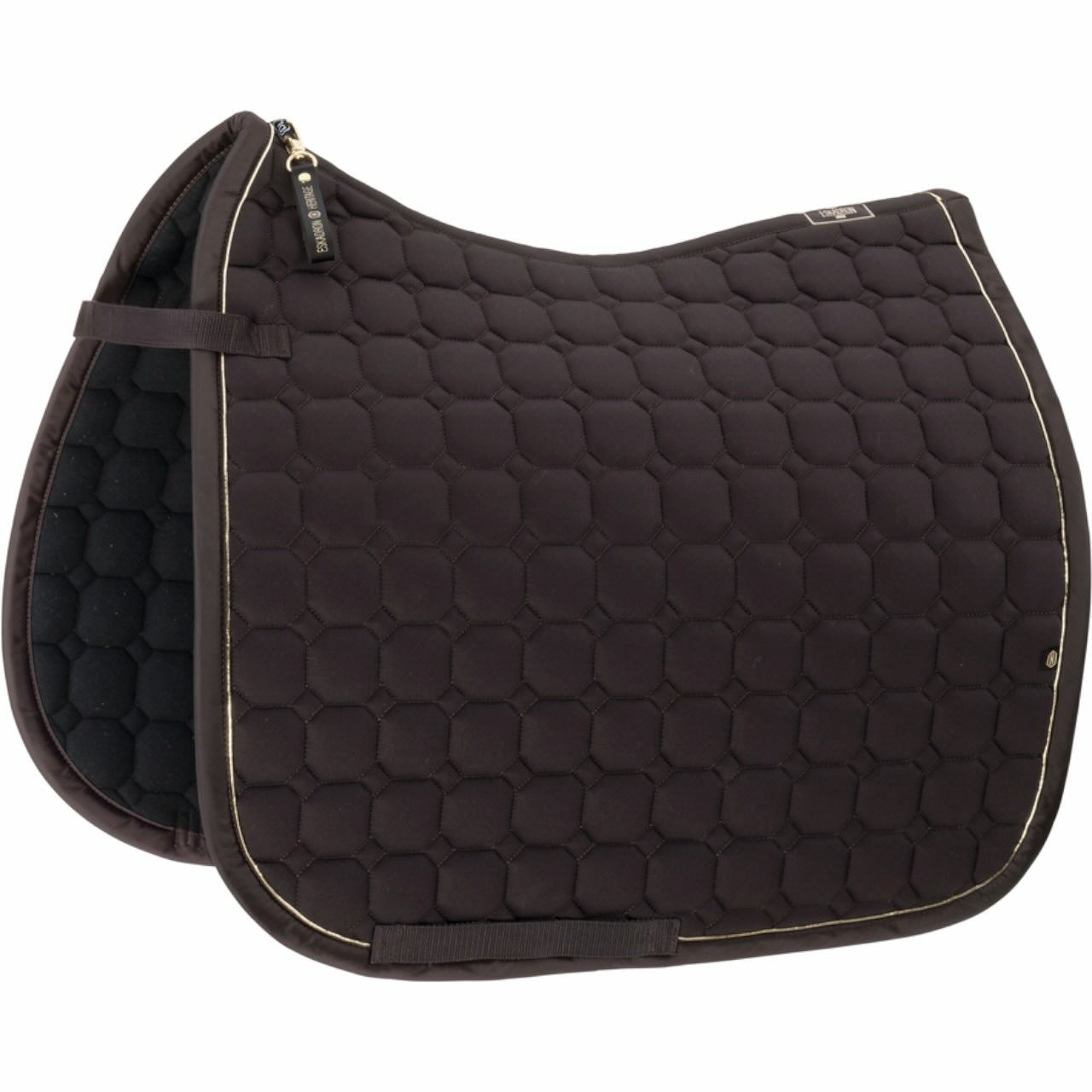Die Dressurschabracke Cotton Heritage 2025 besteht aus 100 % Baumwolle und überzeugt durch ihr atmungsaktives und hautfreundliches Obermaterial. Die Molton-Unterseite ist besonders weich und schont das Fell deines Pferdes. Dank der kompakten Füllung und gleichmäßigen Steppung bleibt die Form auch bei intensiver Nutzung stabil. So wird ein optimaler Druckausgleich unter dem Sattel gewährleistet. Dieses Modell eignet sich perfekt für den täglichen Gebrauch ebenso wie für das Training auf Turnierniveau.