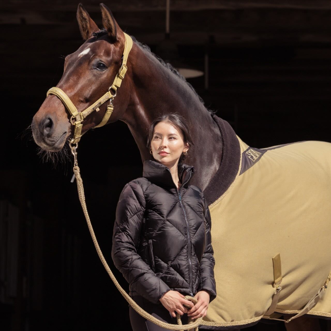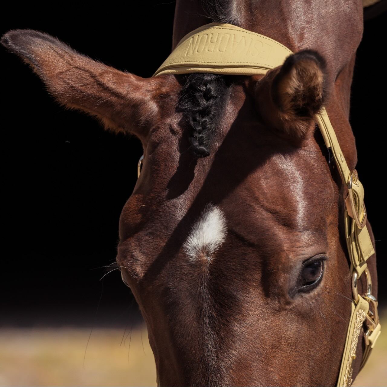 Die charakteristische Eskadron-Metallplakette an der linken Seite steht für Markenqualität und Wiedererkennungswert. Jedes Detail – von der glänzenden Hardware bis zur Lurex-Verzierung – wurde mit höchster Präzision gefertigt. Das Halfter eignet sich perfekt für Reiterinnen und Reiter, die besonderen Wert auf Ästhetik und Komfort legen. Ob im Training, beim Transport oder für Fotoshootings: Dieses Modell überzeugt auf ganzer Linie. Mit seiner Kombination aus Funktionalität, Stil und Pflegeleichtigkeit ist es ein echtes Highlight der aktuellen Heritage-Kollektion.