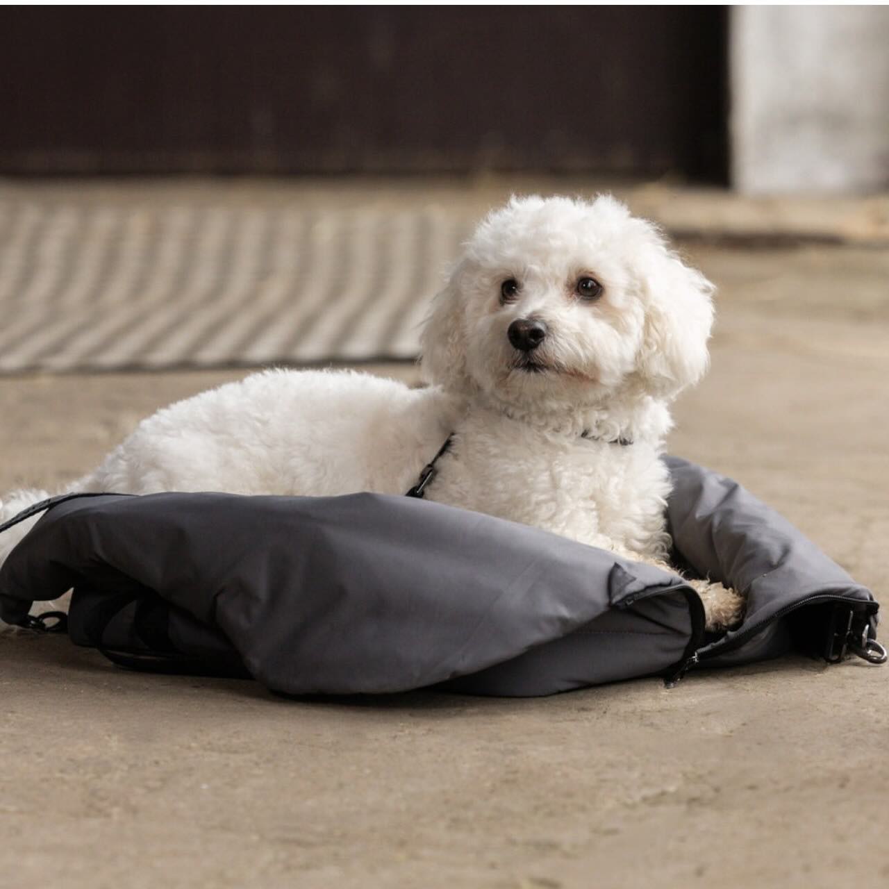 | Besonderheiten | Abnehmbares Stoffkissen, Hundetasche + Decke, reflektierender Aufdruck, seitlich aufklappbar |