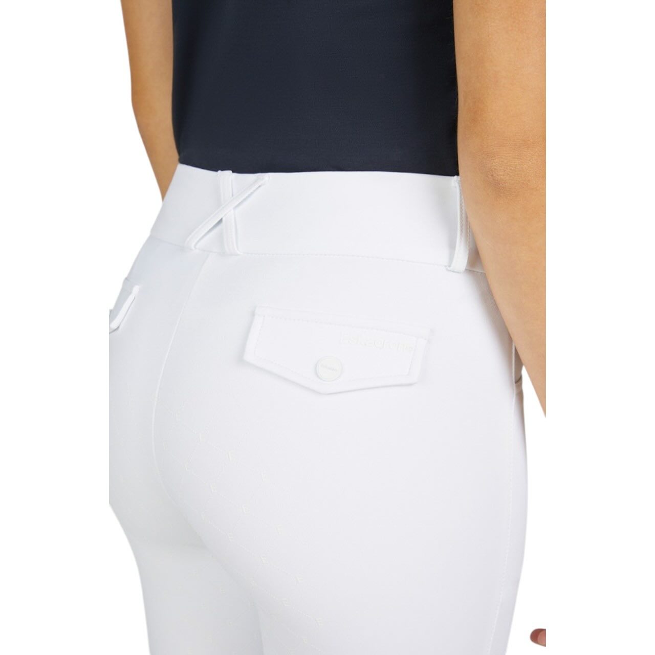 Die tiefen Einschubtaschen bieten ausreichend Platz für dein Smartphone und sind im Reitalltag besonders praktisch. Ton-in-Ton Prints auf der Vorderseite setzen dezente Akzente mit sportivem Charakter. Fake-Pattentaschen mit einseitigem Print runden das Design stilvoll ab. Die klare Linienführung macht die Reithose vielseitig kombinierbar mit Turniershirts, Poloshirts oder Reitjacken. Ob im täglichen Training oder beim Lehrgang – du bist funktional und modern gekleidet. Mit dieser Reithose erhältst du eine durchdachte Kombination aus Komfort, Grip und zeitgemäßem Reitsport-Style.