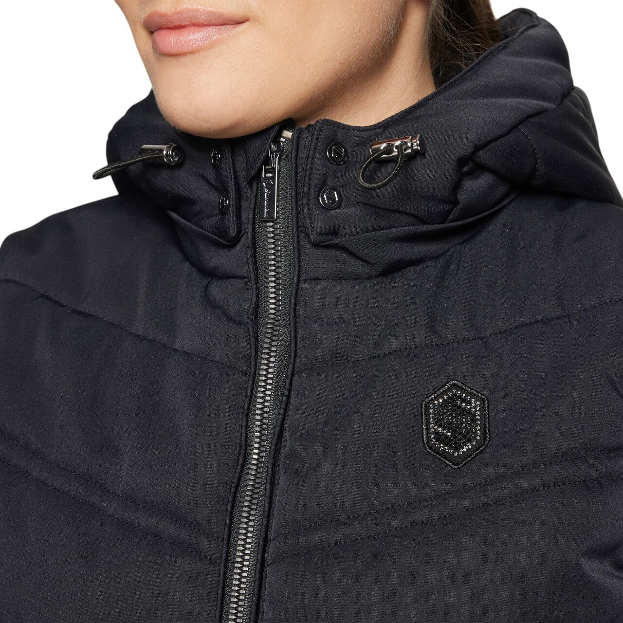 Die Weste Damen Val D'isere Steppweste beeindruckt durch ihr elegantes, tailliertes Design, das deine Silhouette perfekt in Szene setzt. Das glänzende Swarovski-Samshield-Logo auf der Brust verleiht der Weste einen Hauch von Glamour. Die abnehmbare Kapuze bietet dir Flexibilität, sodass du die Weste an jede Wetterlage anpassen kannst.