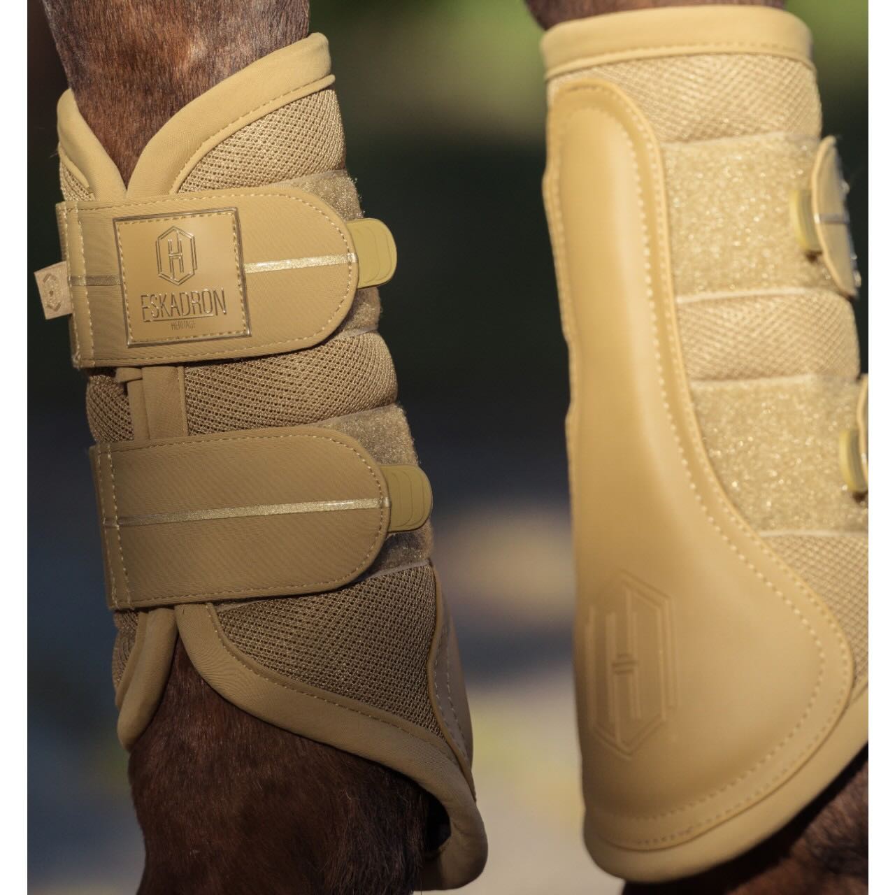 Das Heritage-Emblem und das dezente Flag-Label machen die Gamaschen zu einem echten Blickfang. Sie spiegeln Eskadrons Qualitätsanspruch und Liebe zum Detail wider. Die harmonische Farbgebung fügt sich perfekt in die aktuelle Heritage-Kollektion ein. Ideal für Reiterinnen und Reiter, die Wert auf eine edle Optik legen. Diese Gamaschen sind nicht nur funktional, sondern unterstreichen auch deinen individuellen Stil. Perfekt kombinierbar mit Bandagen und Schabracken der gleichen Linie.