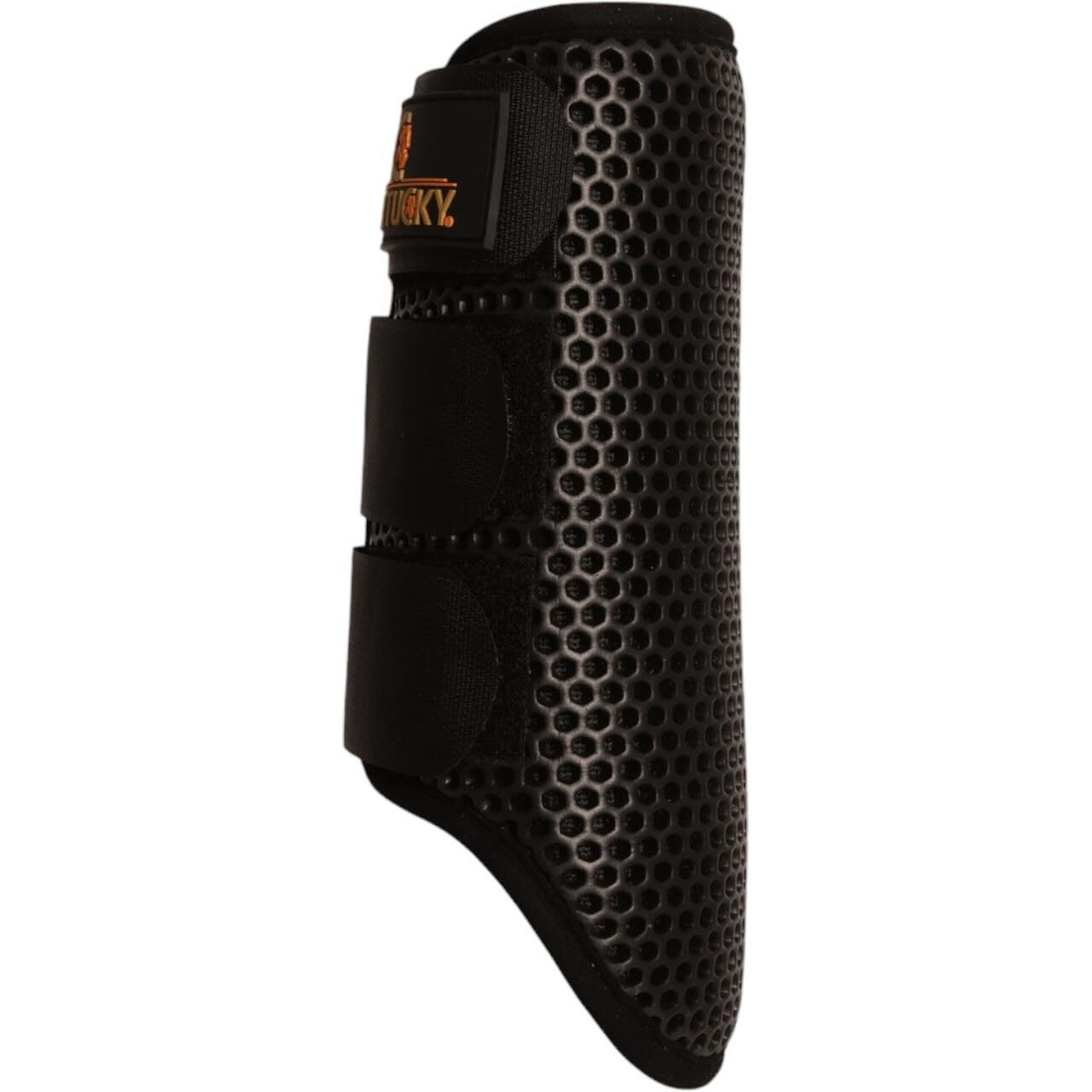 Die Turnout ProAir sind mit einer flexiblen Wabenstruktur versehen, die Stöße zuverlässig abfängt und dennoch volle Bewegungsfreiheit ermöglicht. Das robuste Außenmaterial schützt die Pferdebeine vor Schlägen und Kratzern, während die Luft ungehindert zirkulieren kann. Die innere 3D-Spacer-Polsterung sorgt für optimale Dämpfung und verhindert Hitzestau an Sehnen und Bändern. Dadurch wird das Risiko von Überhitzung und daraus resultierenden Verletzungen effektiv reduziert. Selbst bei intensiver Nutzung bleiben die Gamaschen angenehm leicht und formstabil.