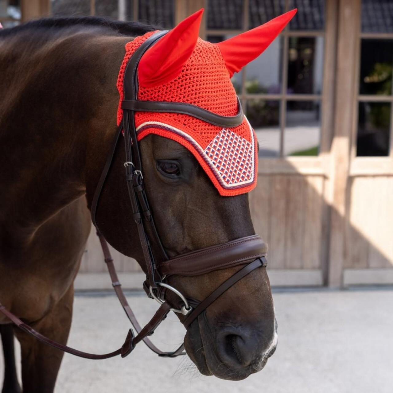Damit sich dein Pferd jederzeit wohlfühlt, verfügt die Fliegenhaube über dehnbares Material an den Ohren. Dieses bietet einen angenehmen Sitz und vermeidet Druckstellen, auch bei längerem Einsatz. Ein verlängerter Nackenteil sorgt dafür, dass die Haube nicht verrutscht – selbst bei intensiven Trainingseinheiten oder Wettkämpfen. Durch die handgefertigte Verarbeitung bleibt die Form stabil und passt sich zugleich optimal an. Das atmungsaktive Material unterstützt den Komfort deines Pferdes bei allen Disziplinen, ob Dressur, Springen oder Eventing. Gleichzeitig wird ein harmonisches Gesamtbild geschaffen, das sowohl stilvoll als auch funktional überzeugt.