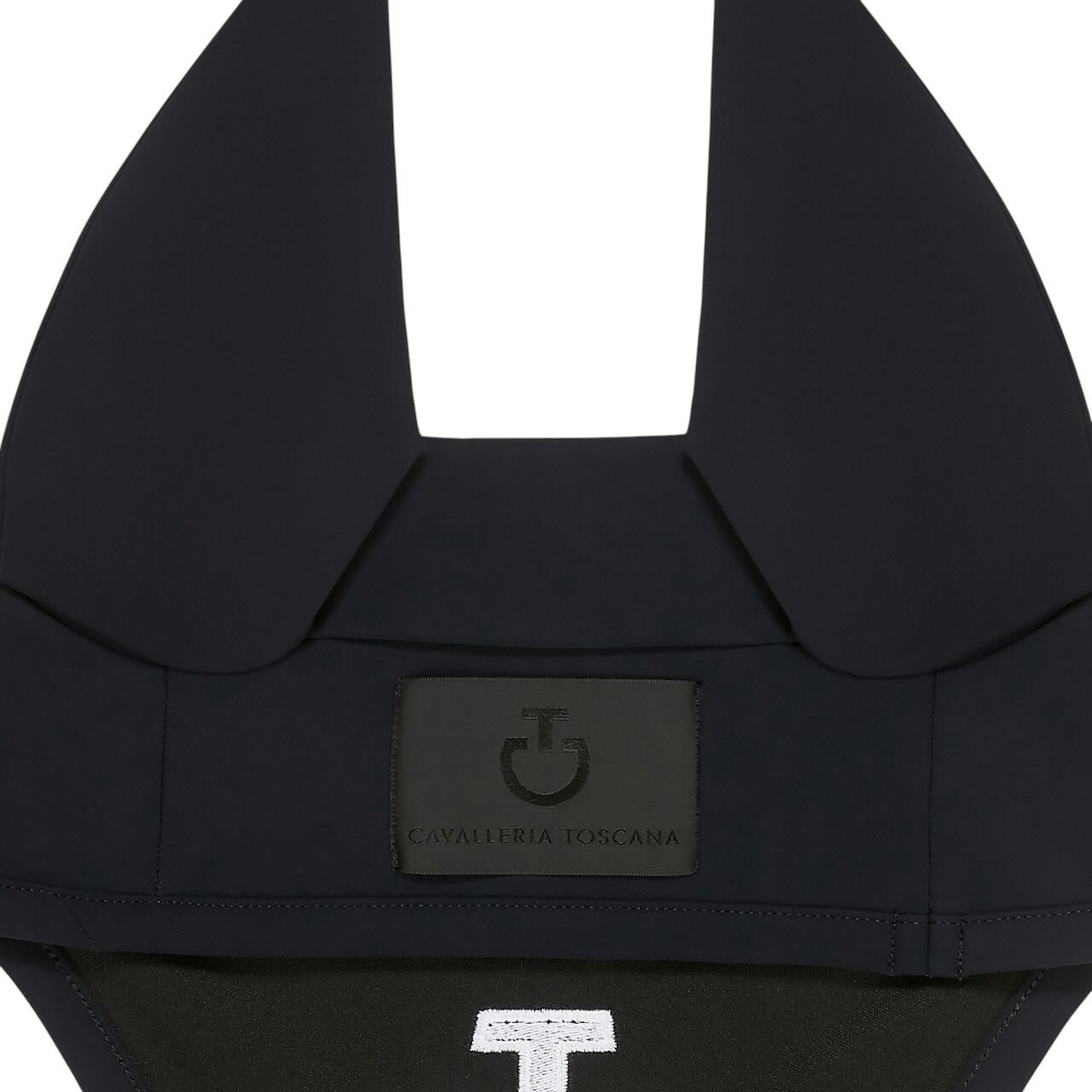 Die Cavalleria Toscana Fliegenhaube überzeugt nicht nur durch Funktionalität, sondern auch durch ihre elegante Optik. Ein kontrastierendes Einfassband und das edel gestickte Logo auf der Stirn verleihen ihr eine exklusive Note. Das Design ist zeitlos und harmoniert perfekt mit jeder Schabracke oder Turnierausstattung. Damit ist sie nicht nur ein nützliches, sondern auch ein stilvolles Accessoire im Reitsport. Dein Pferd präsentiert sich damit stets von seiner besten Seite. Pflegeleichte Materialien runden den hohen Qualitätsanspruch ab.