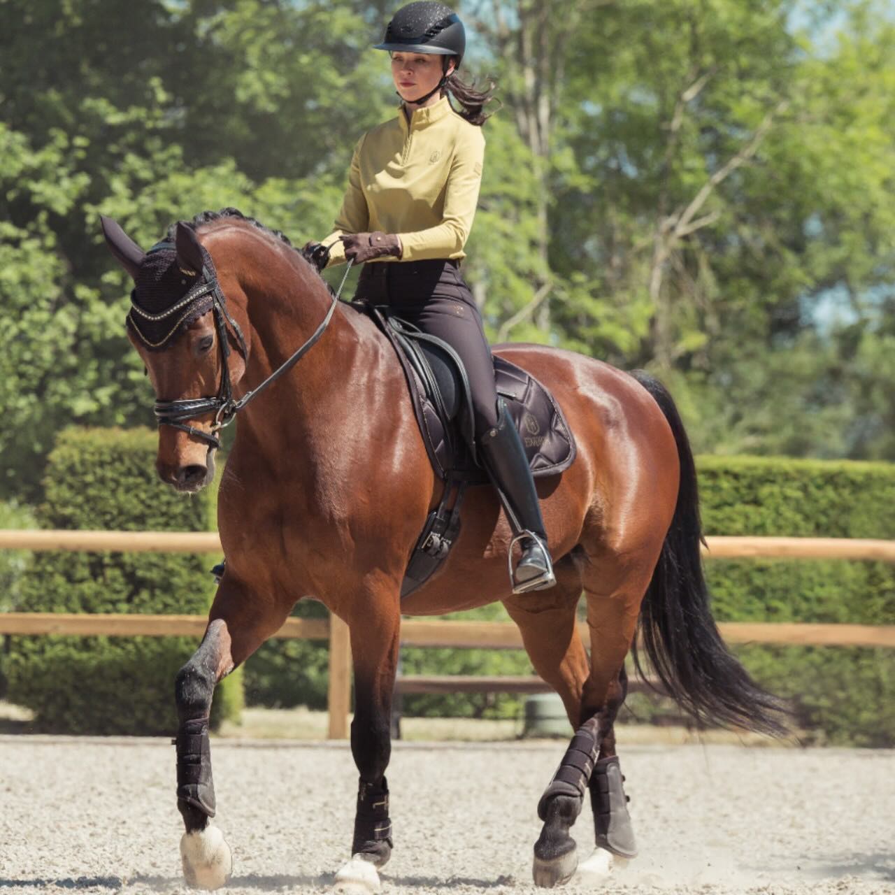 Dank der sorgfältigen Verarbeitung sitzt die Crystal Heritage 2025 Fliegenmütze optimal am Pferdekopf. Das elastische Material im Ohrenbereich gewährleistet Bewegungsfreiheit und Komfort, selbst bei langen Ritten. Das atmungsaktive Baumwollgarn unterstützt ein angenehmes Klima unter der Haube. Sie eignet sich sowohl für den täglichen Gebrauch als auch für den Turniereinsatz. Ob im Sommer gegen Fliegen oder als modisches Statement – diese Fliegenhaube ist vielseitig einsetzbar. Damit zeigst du dein Pferd stets von seiner besten Seite.
