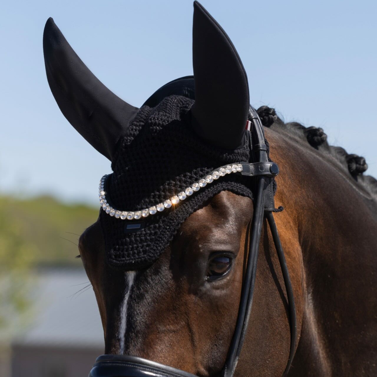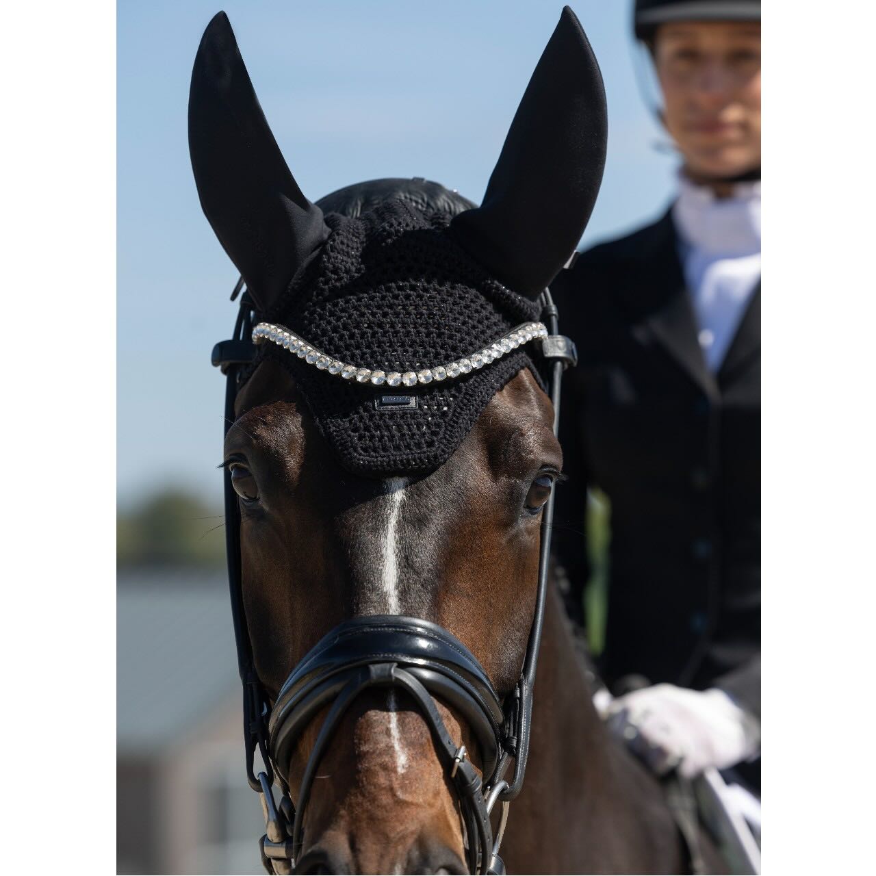 Das hochwertige Häkelmaterial aus 100 % Baumwolle sorgt für eine optimale Luftzirkulation an warmen Tagen. Durch die atmungsaktive Struktur wird ein Hitzestau unter der Fliegenhaube effektiv reduziert. Gleichzeitig schützt die Fliegenmütze zuverlässig vor lästigen Insekten im Bereich von Stirn und Ohren. Ein dezenter Glitzereffekt im Garn verleiht dem klassischen Crochet-Look eine moderne, edle Note. Die farblich abgestimmten Ohrenteile fügen sich harmonisch ins Gesamtbild ein. So entsteht ein stilvoller Turnierlook, der Funktionalität und Design perfekt verbindet.