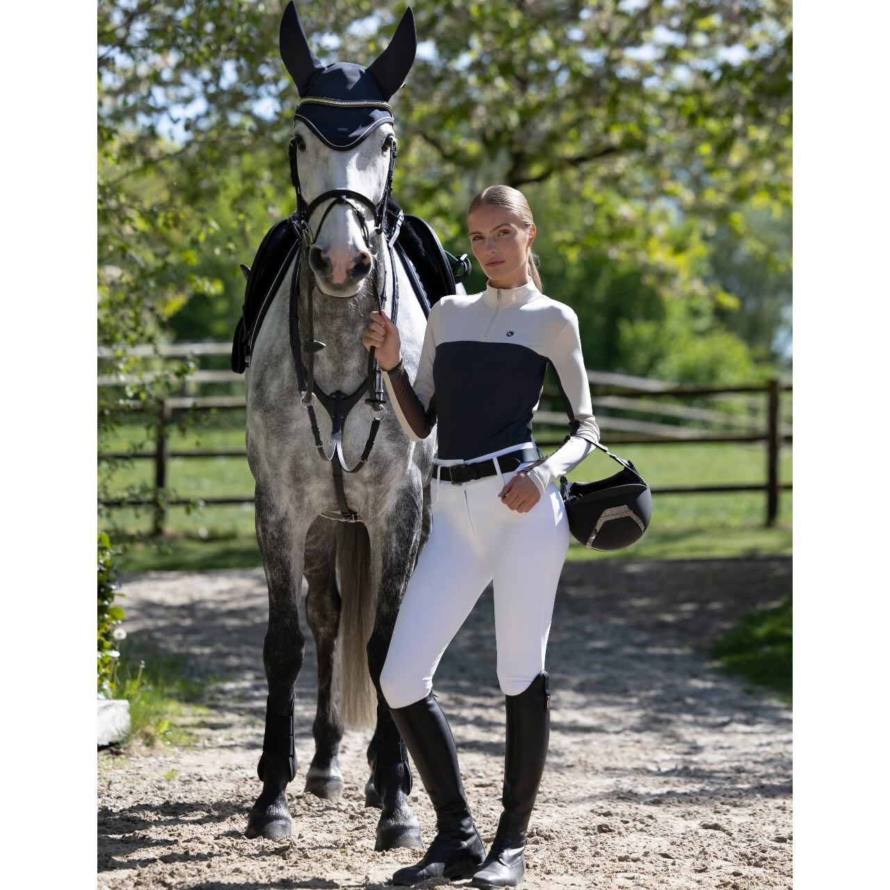 Neben ihrer Funktionalität überzeugt die Fliegenhaube durch stilvolle Details. Eine helle, kontrastierende Satinpaspelierung verleiht ihr einen edlen Look. Die Ton-in-Ton-Stickerei mit Kingsland-Logo auf den Ohren unterstreicht die hochwertige Markenoptik. Ergänzt wird das Design durch eine schlanke Metallplakette mit geprägtem Logo. Dadurch passt die Fliegenmütze ideal zu modernen Turnieroutfits und stilvollen Trainingssets. Die Kombination aus Performance-Materialien und elegantem Finish macht sie zu einem echten Highlight im Horsegear-Bereich.