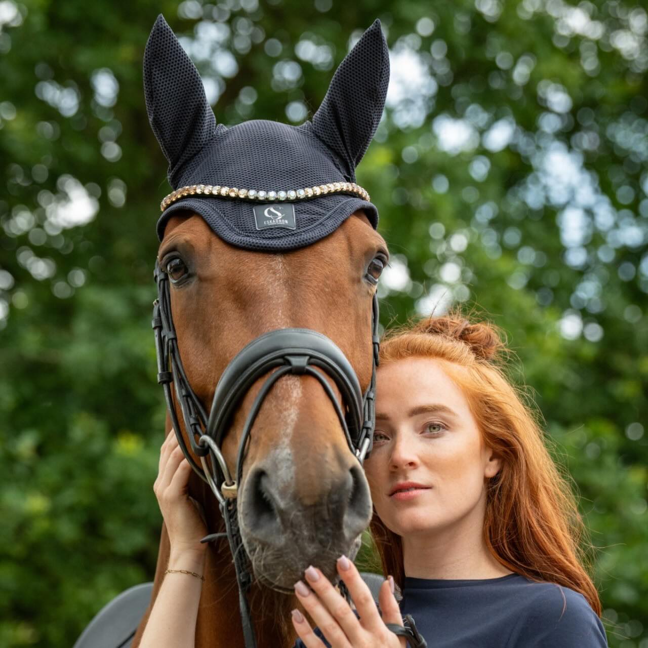 Die Kordel ist ton in ton gehalten und sorgt für ein harmonisches Gesamtbild. Der Schriftzug auf dem Ohr unterstreicht den sportlichen Charakter. Ein Emblem rundet die Optik hochwertig ab, ohne aufdringlich zu wirken. So passt das Modell gut zu klassischen und modernen Schabracken-Kombinationen. Für dich bedeutet das: Fliegenschutz, der funktional ist und im Outfit stimmig aussieht. Besonders im Training oder auf dem Turnier wirkt der Look ordentlich und durchdacht.