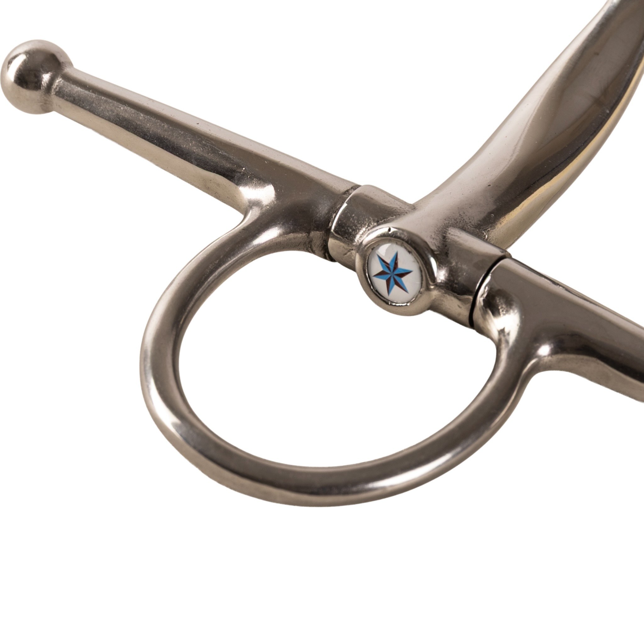 Die festen Gebissschenkeln bieten deinem Pferd eine sichere seitliche Orientierung und erleichtern präzise Zügelhilfen. Sie stabilisieren das Mundstück und helfen insbesondere jungen oder unerfahrenen Pferden, die Hilfen ruhig und verständlich anzunehmen. Durch die seitliche Begrenzung bleibt das Gebiss ruhig liegen und unterstützt eine gelassene Kommunikation. Diese verlässliche Konstruktion schafft Vertrauen und sorgt für eine gleichmäßige Verbindung während des gesamten Rittes. Ideal für Reiter, die eine klare und strukturierte Einwirkung bevorzugen.