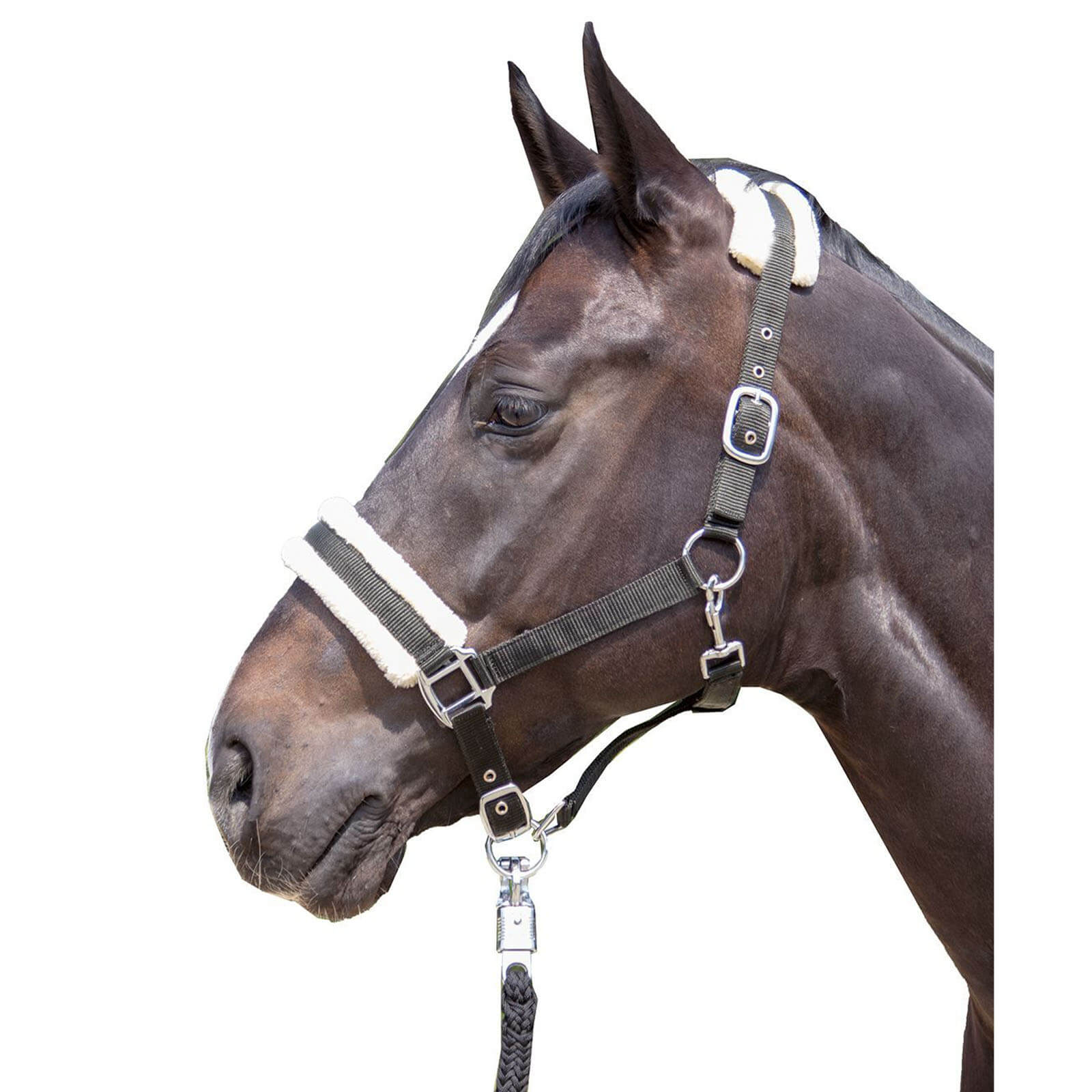 Mit seiner durchdachten Technik bietet das Halfter zahlreiche funktionale Vorteile. Die Plüschpolsterung an Nasen- und Genickstück schützt die empfindlichen Bereiche des Pferdekopfes und verhindert Druckstellen. Die beidseitig verstellbaren Genickstücke sowie der praktische Karabinerhaken ermöglichen ein schnelles und sicheres Anlegen des Halfters. Die nietenverstärkten Verschlüsse garantieren zusätzliche Stärke und Sicherheit.