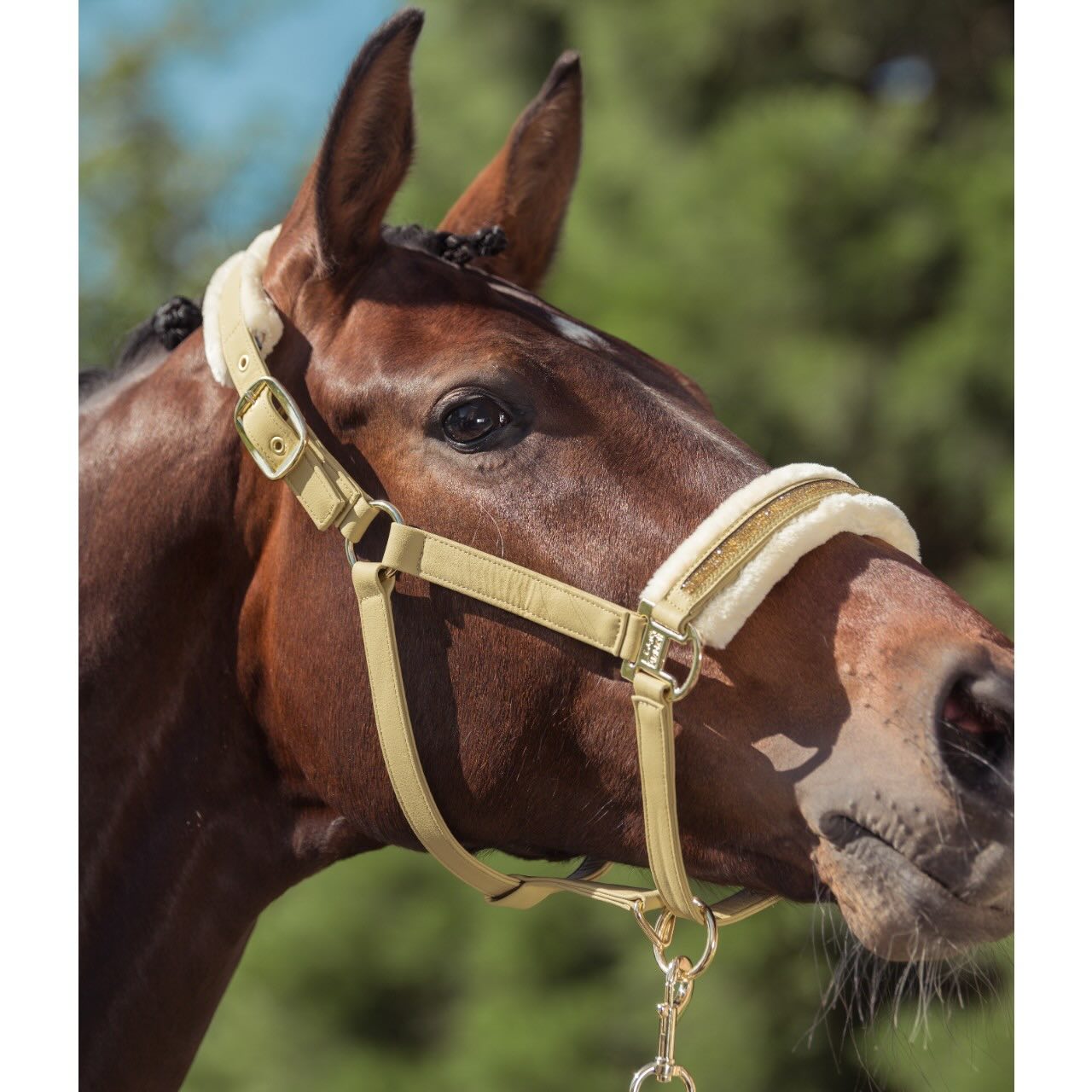 Das Halfter Faux Leather Jewel Heritage 2025 besteht aus pflegeleichtem Kunstleder mit robustem Gurtband im Inneren. Dadurch bleibt es formstabil und widerstandsfähig – ideal für den täglichen Gebrauch. Die weiche Faux-Fur-Polsterung an Nasen- und Genickstücken sorgt für maximalen Komfort und schützt vor Reibung. Goldene Metallbeschläge verleihen dem Halfter einen edlen Glanz, der perfekt zur eleganten Linienführung passt. Die funkelnden Steinchen auf dem Nasenriemen setzen dezente, aber wirkungsvolle Akzente. Damit steht das Halfter für pure Eleganz im Stallalltag.