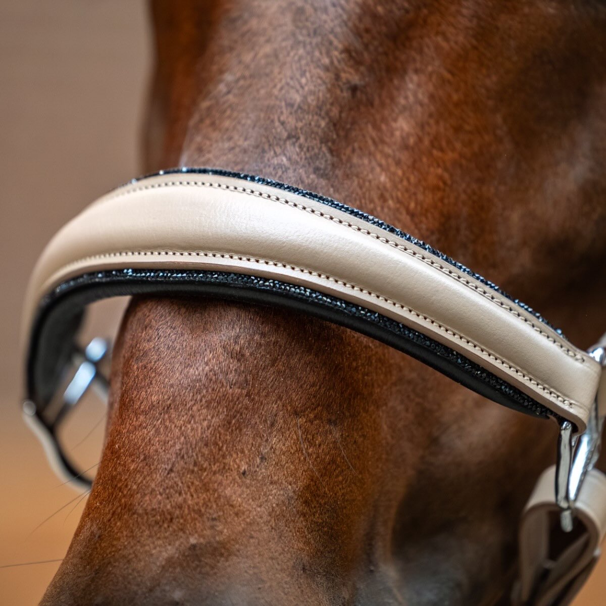 Equestrian Stockholm präsentiert mit dem Glimmer Leather Anatomic Halter Sand ein hochwertiges Lederhalfter, das Komfort, Funktionalität und elegantes Design vereint. Die anatomische Form unterstützt eine druckentlastende Passform und sorgt für ein angenehmes Tragegefühl. Edle Details und eine stilvolle Farbgebung machen dieses Halfter zu einem echten Blickfang. Ideal geeignet für Turniere, Transport und den täglichen Einsatz. Ein Halfter, das höchste Ansprüche erfüllt.