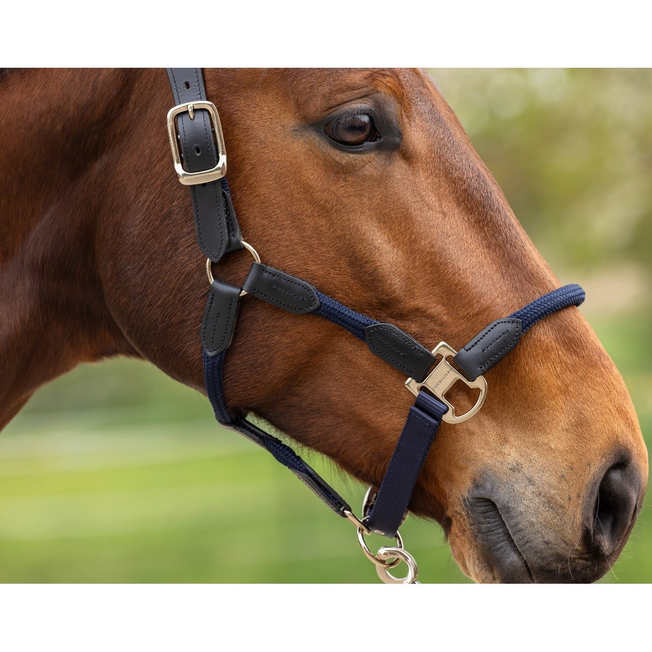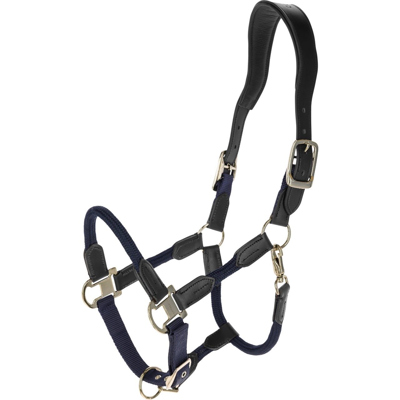 Gefertigt aus strapazierfähigem Polyester überzeugt das Halfter durch seine hohe Reißfestigkeit und Langlebigkeit. Massive und formschöne Metallbeschläge unterstreichen die hochwertige Verarbeitung und sorgen für zusätzliche Stabilität. Das praktische Öffnen und Schließen per Karabinerhaken erleichtert dir das An- und Abhalftern im täglichen Handling. Gleichzeitig gewährleisten die stabilen Beschläge Sicherheit beim Führen oder Anbinden. Die sorgfältige Materialkombination aus Textil und Leder verbindet Funktion mit klassischer Optik. So erhältst du ein zuverlässiges Stallhalfter mit eleganter Ausstrahlung.