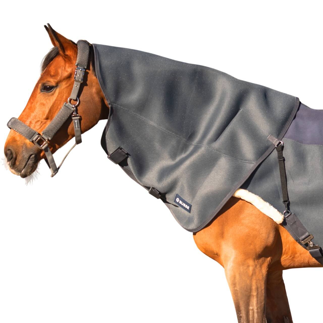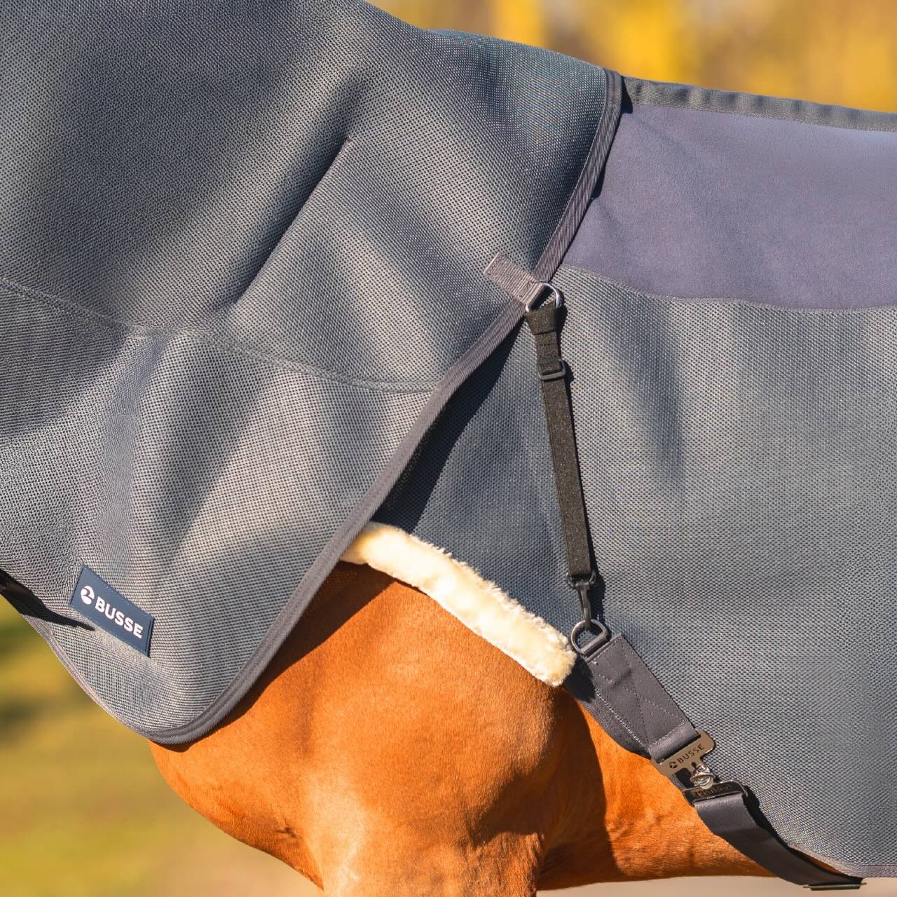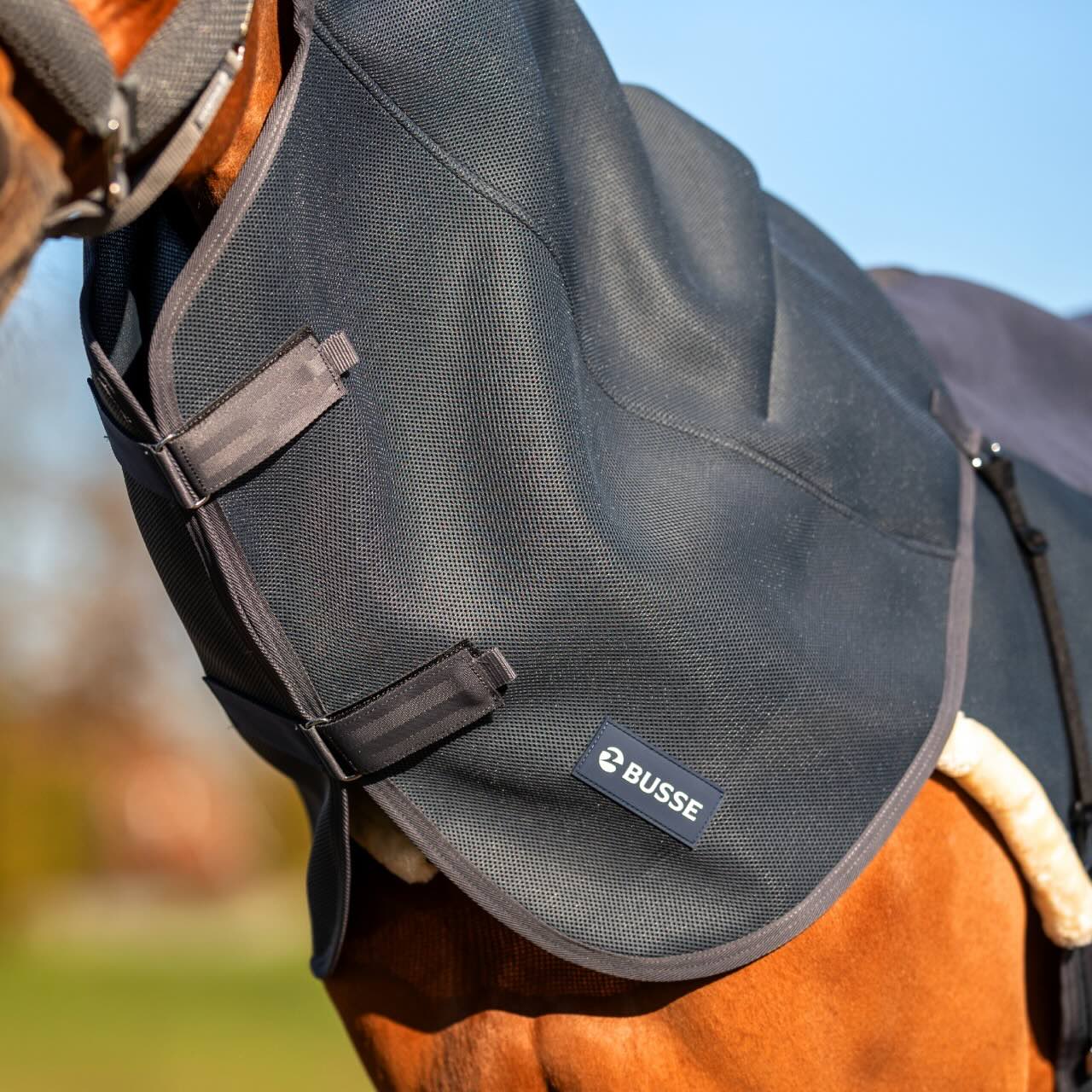 Das BUSSE Halsteil für Bewegungsdecke 3D Air lässt sich mühelos mit den passenden Bewegungsdecken 3D AIR ST und 3D AIR FL verbinden. Ein stabiles Klettsystem sorgt für sicheren Halt, während handliche Klettverschlüsse das An- und Ablegen erleichtern. Abnehmbare, längeneinstellbare Elastikgurte verhindern, dass das Halsteil bei Bewegung oder Wind verrutscht. So bleibt es stets in Position und schützt zuverlässig den empfindlichen Halsbereich. Diese funktionale Verbindung ermöglicht deinem Pferd maximale Bewegungsfreiheit und Komfort beim Training.
