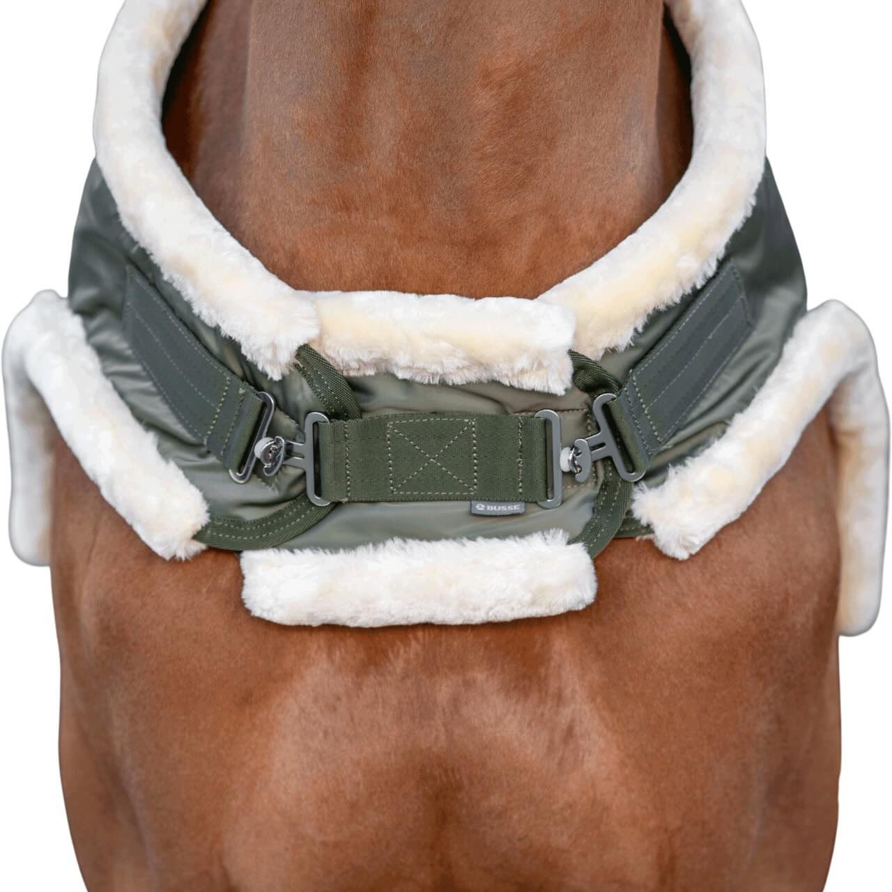 Die BUSSE Brusterweiterung für Bewegungsdecke 3D Air wurde speziell entwickelt, um die Passform der Bewegungsdecken individuell anzupassen. Sie schafft zusätzliche Weite im Brustbereich, ohne den Sitz der Decke im restlichen Bereich zu beeinträchtigen. Das weiche Kunstfell schmiegt sich angenehm an und schützt vor Reibung. Durch die atmungsaktiven Materialien bleibt die Luftzirkulation unter der Decke gewährleistet. So profitieren Pferde von optimalem Komfort – auch bei längerer Tragezeit.