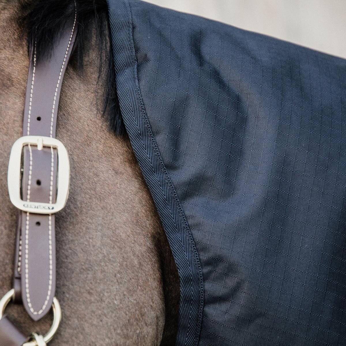 Das Halsteil präsentiert sich in einer klassischen Navy-Farbe, die nicht nur edel aussieht, sondern auch perfekt zu den Outdoordecken von Kentucky Horsewear passt. Das 600D-Ripstop-Gewebe verleiht dem Halsteil ein robustes Aussehen und sorgt gleichzeitig für eine widerstandsfähige Schutzschicht gegen Wind und Wetter.