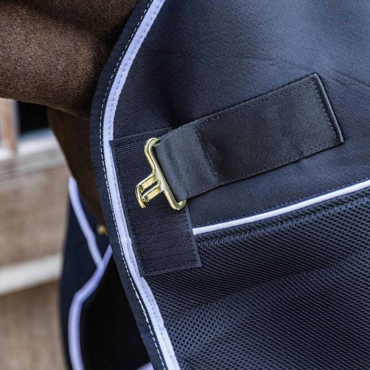 Die Comfort 3D Fleece Liner setzt auf eine clevere Verbindung aus kuscheligem Fleece und atmungsaktivem 3D-Spacer-Gewebe. Das Fleece am Rücken spendet angenehme Wärme, während die wabenartige Spacer-Struktur für konstante Luftzirkulation sorgt. So bleibt dein Pferd stets in einer optimalen Temperaturzone. Gleichzeitig kann überschüssige Wärme entweichen, was das Risiko von Schwitzen deutlich reduziert. Diese Eigenschaften machen die Decke zu einer perfekten Ergänzung für saisonale Übergänge. Das Ergebnis: Komfort, den dein Pferd spürt – bei jeder Witterung.