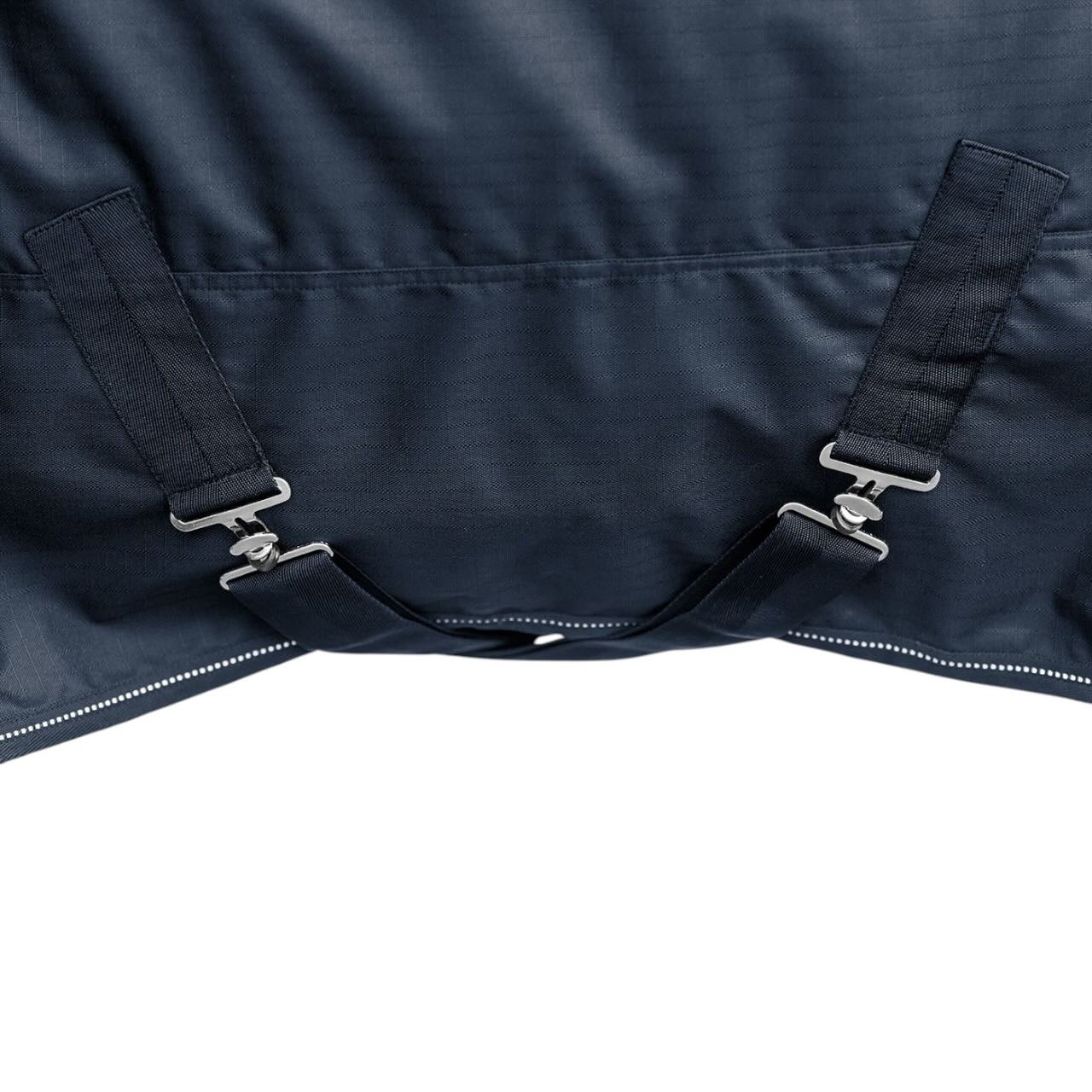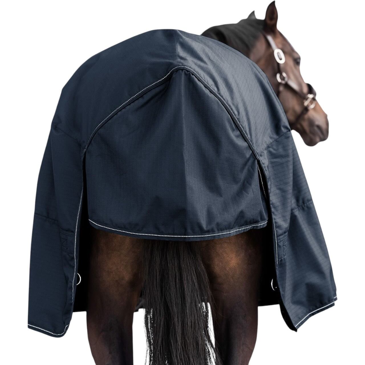 Dank des 600 Denier Ripstop-Materials ist die Decke extrem widerstandsfähig gegen äußere Einflüsse. Sie ist wasserdicht bis zu einer Wassersäule von 3000 mm und gleichzeitig atmungsaktiv, was für eine optimale Luftzirkulation sorgt. Die doppelten T-Frontverschlüsse bieten eine sichere Passform und sind leicht zu handhaben. Mit reflektierenden Details ausgestattet, bietet die Decke auch bei schlechten Lichtverhältnissen erhöhte Sicherheit.