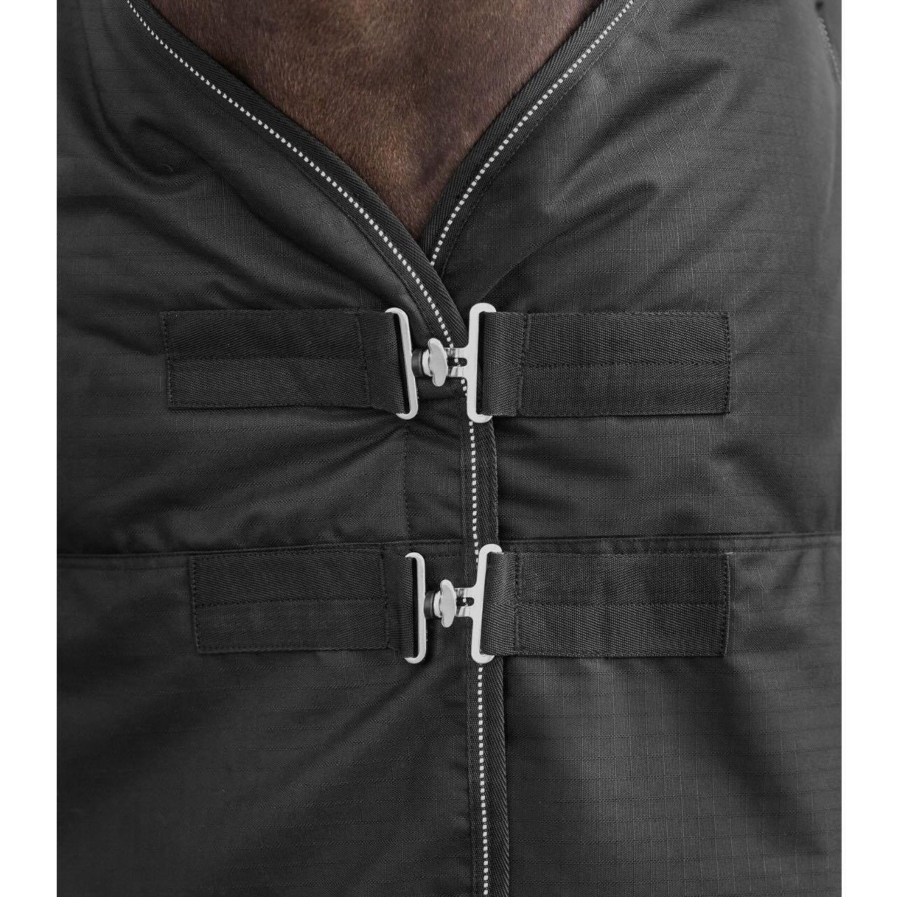 Dank des 600 Denier Ripstop-Materials ist die Decke extrem widerstandsfähig gegen äußere Einflüsse. Sie ist wasserdicht bis zu einer Wassersäule von 3000 mm und gleichzeitig atmungsaktiv, was für eine optimale Luftzirkulation sorgt. Die doppelten T-Frontverschlüsse bieten eine sichere Passform und sind leicht zu handhaben. Mit reflektierenden Details ausgestattet, bietet die Decke auch bei schlechten Lichtverhältnissen erhöhte Sicherheit.