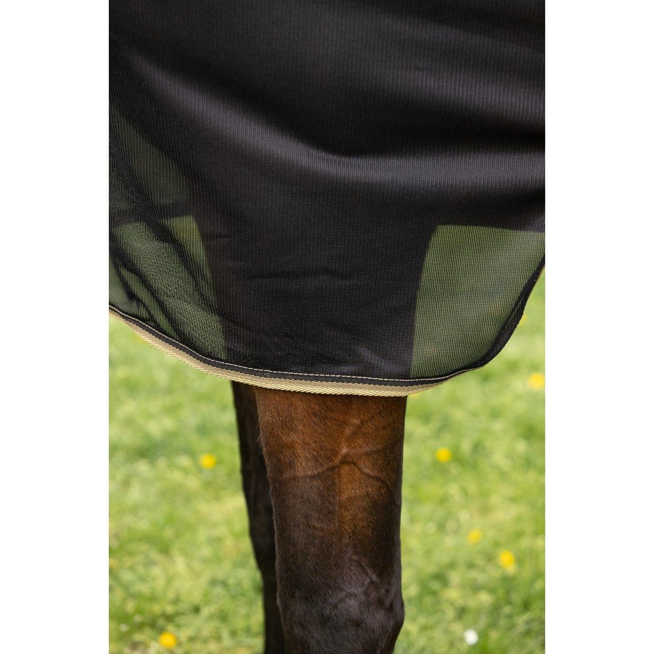 Das engmaschige, weiche Polyestergewebe bietet einen effektiven Schutz vor lästigen Fliegen, Bremsen sowie Stech- und Beißinsekten. Gleichzeitig überzeugt das Material durch seine angenehme Leichtigkeit und hohe Strapazierfähigkeit im täglichen Einsatz. Die Decke eignet sich optimal für Weidegang, Offenstall oder Paddock. Durch die atmungsaktive Struktur wird ein Hitzestau unter der Fliegendecke reduziert. Zusätzlich ist das Gewebe UV-beständig und schützt dein Pferd auch an sonnigen Tagen. So unterstützt die Decke das Wohlbefinden deines Pferdes während der gesamten Fliegensaison.