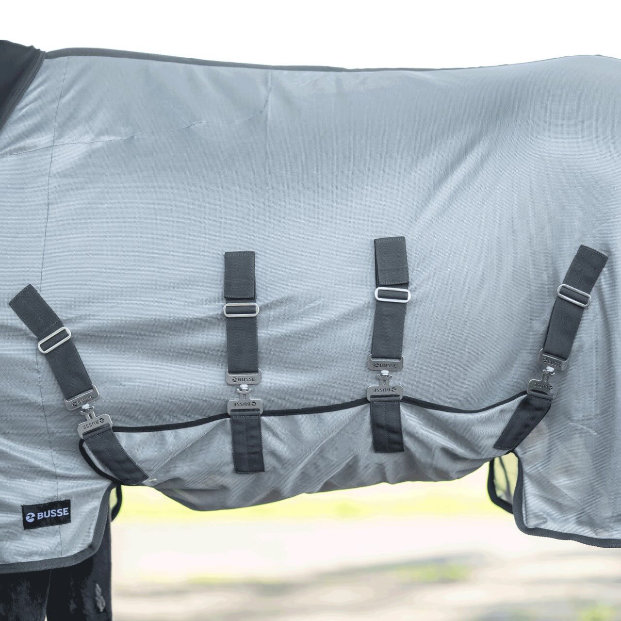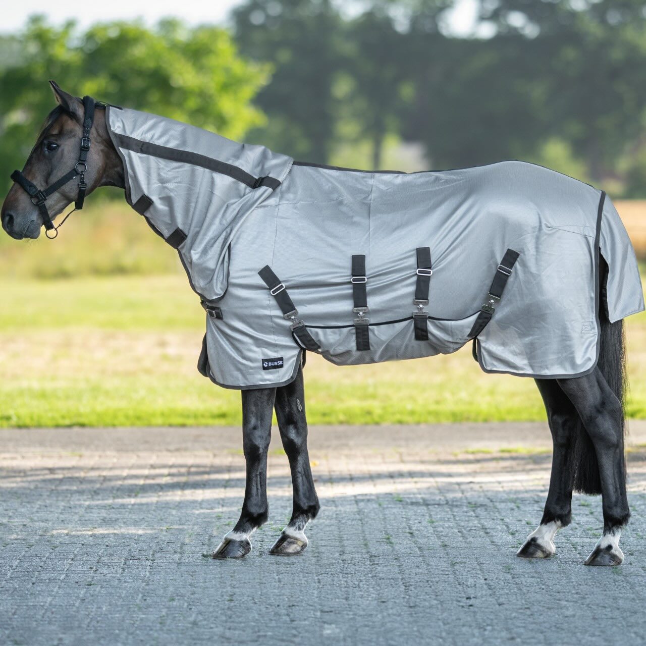 Busse Outdoordecke Superb AB Fliegendecke vereint robusten Insektenschutz mit durchdachter Flexibilität für Stall, Weide und Paddock. Als konsequente Weiterentwicklung der bewährten SUPERB überzeugt sie mit optimierter Passform, abnehmbarem Bauchlatz und funktionalem Halsteil. Für entspannte Stunden auf der Weide – selbst bei starkem Fliegen- und Bremsenaufkommen.