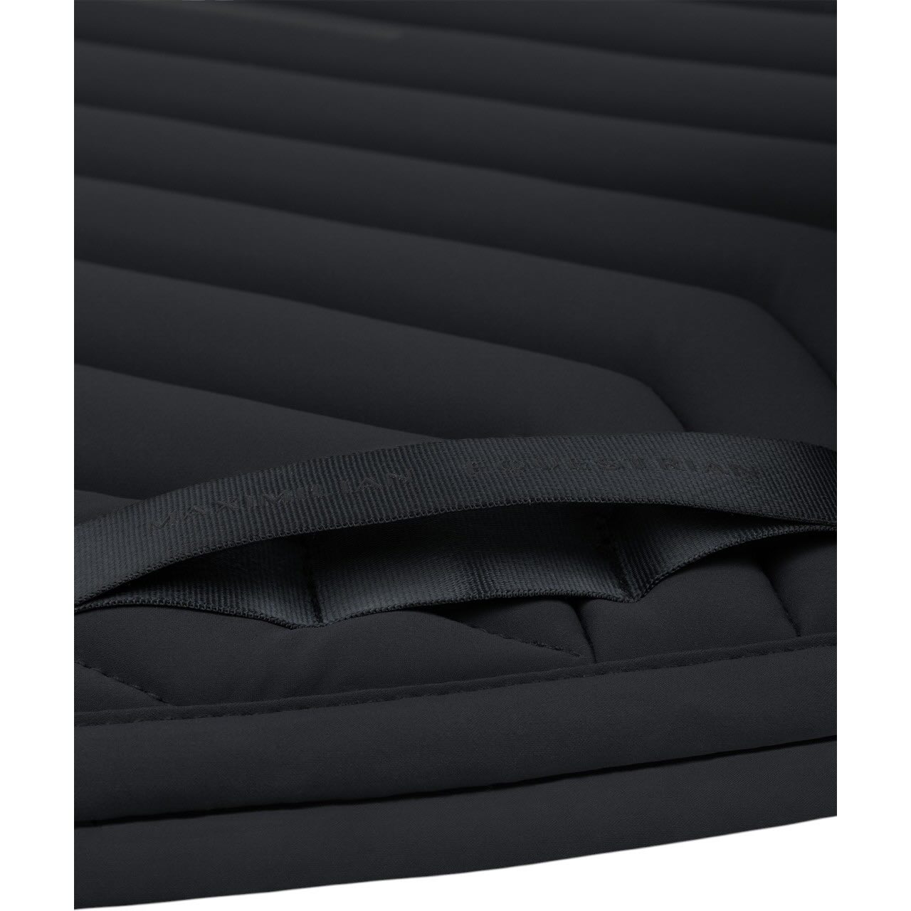 Die anatomische Form der Dressurschabracke gewährleistet eine optimale Lage unter dem Sattel. Silikonstreifen entlang der Sattelauflage verhindern ein Verrutschen während des Reitens. Dadurch bleibt der Sattel stabil an seiner Position, selbst bei anspruchsvollen Lektionen. Die Gurtstrippen mit drei Verstellmöglichkeiten ermöglichen eine individuelle Anpassung. Dies sorgt für zusätzliche Sicherheit und Flexibilität im täglichen Gebrauch. Die Kombination aus Funktion und Passform unterstützt eine präzise Hilfengebung.