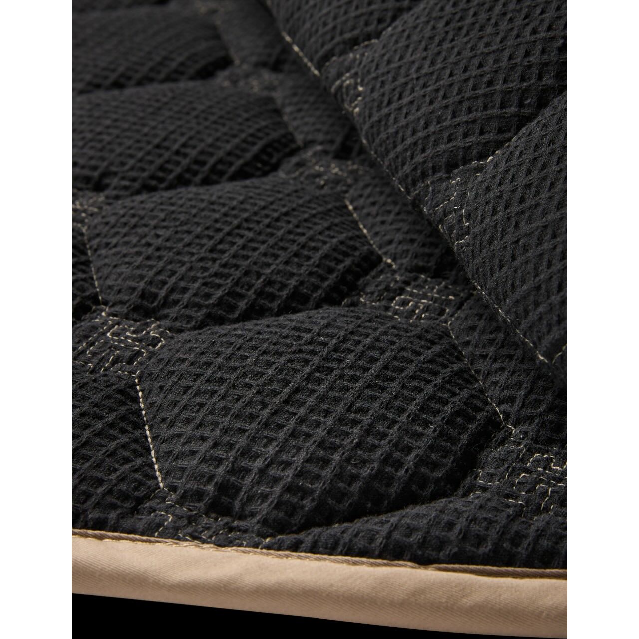 Das Waffelstruktur-Futter sorgt für hervorragende Atmungsaktivität, wodurch die Luftzirkulation unter dem Sattel verbessert wird. Gleichzeitig überzeugt das Material durch eine effektive Feuchtigkeitsregulierung, die das Pferd auch bei intensiven Trainingseinheiten trocken hält. Die Füllung aus 100 % Polyester sorgt für eine stabile Form und lange Haltbarkeit. Die Außenseite aus einem Baumwoll-Polyester-Mix bietet eine angenehme Haptik. Die pflegeleichte Oberfläche erleichtert die Reinigung und macht die Schabracke besonders alltagstauglich. Damit verbindet sie Funktionalität und Ästhetik auf höchstem Niveau.