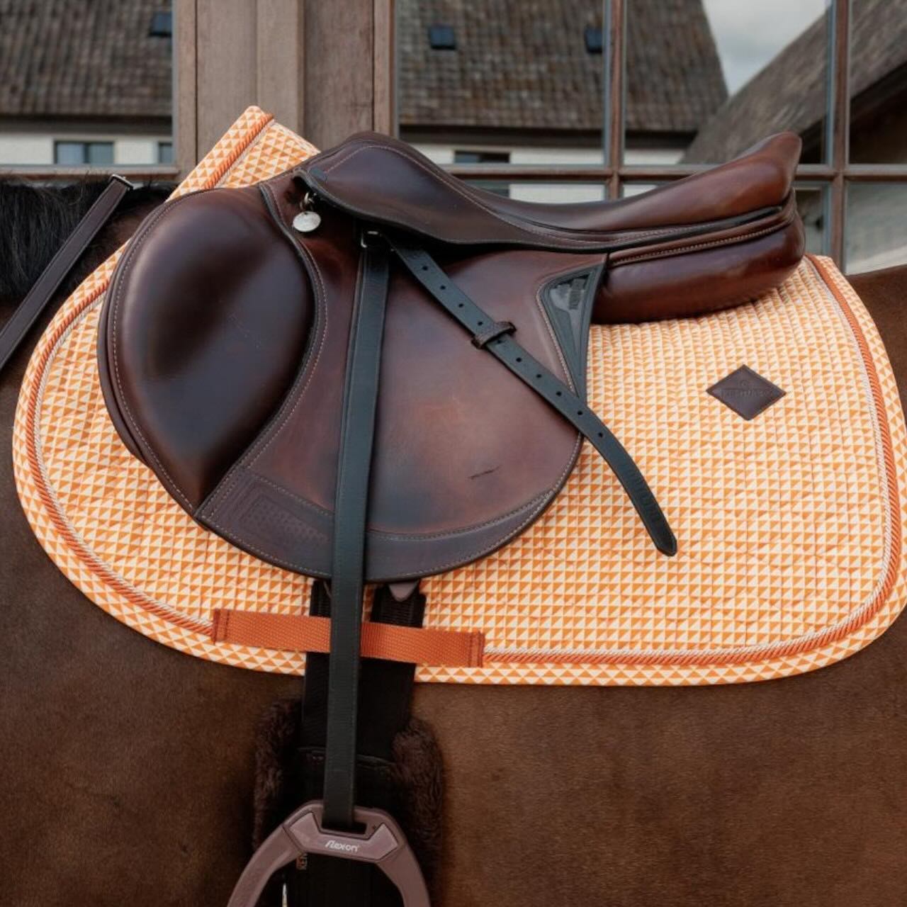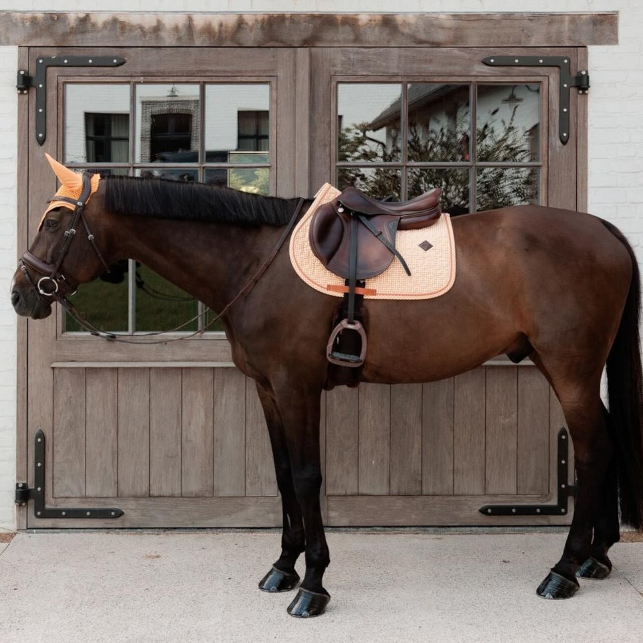 Neben dem edlen Erscheinungsbild überzeugt die Schabracke auch durch ihre praktische Ausstattung. Sie kommt ohne Sattelgurtschlaufe aus und bietet dennoch sicheren Halt. Die Passform ist speziell auf den Springsport abgestimmt und bleibt auch während intensiver Einheiten zuverlässig. Erhältlich ist sie in mehreren Farben und Prints, sodass du deinen persönlichen Stil ausdrücken kannst. Mit der optional passenden Fliegenhaube Ref. 42637 lässt sich ein harmonisches Gesamtbild schaffen. Damit bist du für Training und Turnier bestens vorbereitet.