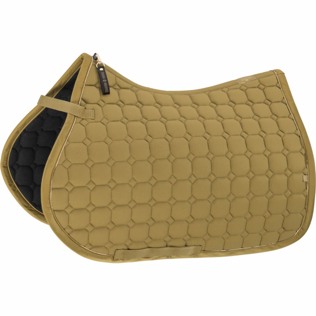 Die elegante Lurex-Biese auf der glänzenden Glossy-Einfassung verleiht der Eskadron Cotton Heritage 2025 ihren edlen Look. Funktionalität kommt dabei nicht zu kurz: Die Gurtschlaufe mit dreifacher Fixierungsoption ermöglicht eine perfekte Anpassung an verschiedene Satteltypen. Das beidseitige Flag-Label rundet das Design hochwertig ab und unterstreicht die Exklusivität dieser Schabracke. Als besonderes Extra wird sie inklusive einem Eskadron Schlüsselanhänger geliefert – ein stilvolles Detail für echte Markenliebhaber. Diese Kombination aus Design und Nutzen überzeugt im täglichen Einsatz und auf dem Turnier.