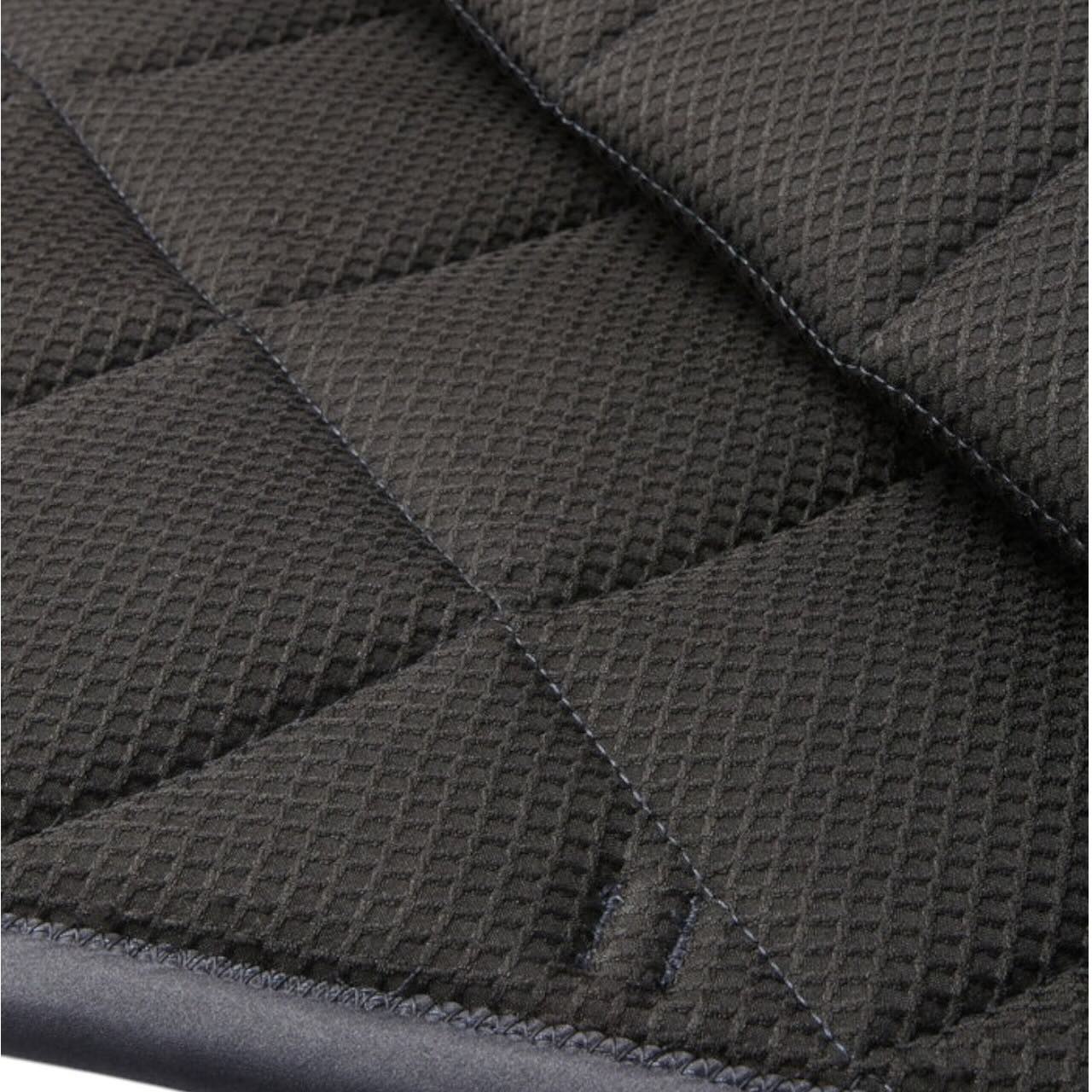 Die weiche Haptik sorgt für ein angenehmes Gefühl auf dem Pferderücken. Gleichzeitig unterstützt die durchdachte Form eine optimale Passform unter dem Springsattel. Dadurch bleibt die Schabracke auch bei intensiven Trainingseinheiten zuverlässig in Position. Das atmungsaktive Innenfutter mit Waffelstruktur unterstützt eine effektive Luftzirkulation. Feuchtigkeit wird zuverlässig aufgenommen und nach außen abgeleitet. So trägt die Schabracke zu einem angenehmen Klima unter dem Sattel bei.