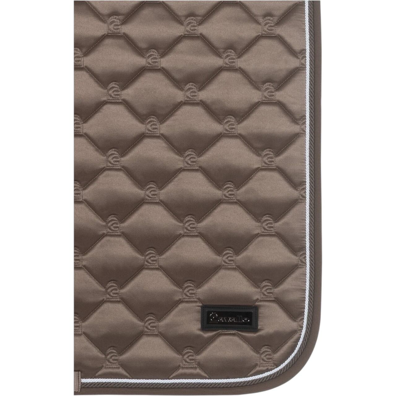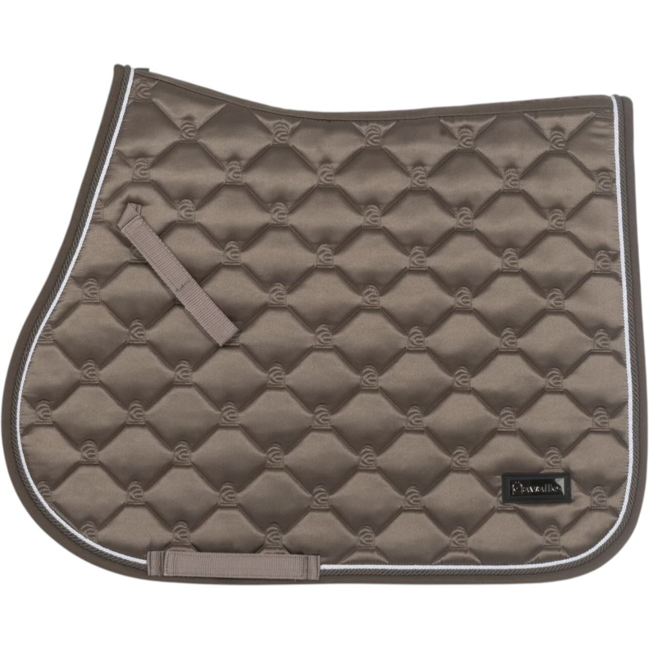 Die Cavallo Springschabracke CAVALHANAYA FS 2026 Sattelunterlage überzeugt durch ihr leicht glänzendes Obermaterial aus hochwertigem Satin. Dieses Material verleiht der Schabracke eine edle Optik und sorgt gleichzeitig für eine robuste Oberfläche im täglichen Einsatz. Die aufwendige Allover-Rautensteppung integriert dezent das Cavallo-Logo in das Design. Dadurch entsteht ein stilvoller Markenlook, der auf dem Pferd besonders elegant wirkt. Ein kleines Cavallo-Label in moderner Gunmetal-Optik unterstreicht den exklusiven Charakter. Die matte Silberkordel rundet das Gesamtbild harmonisch ab und sorgt für eine hochwertige Turnieroptik.