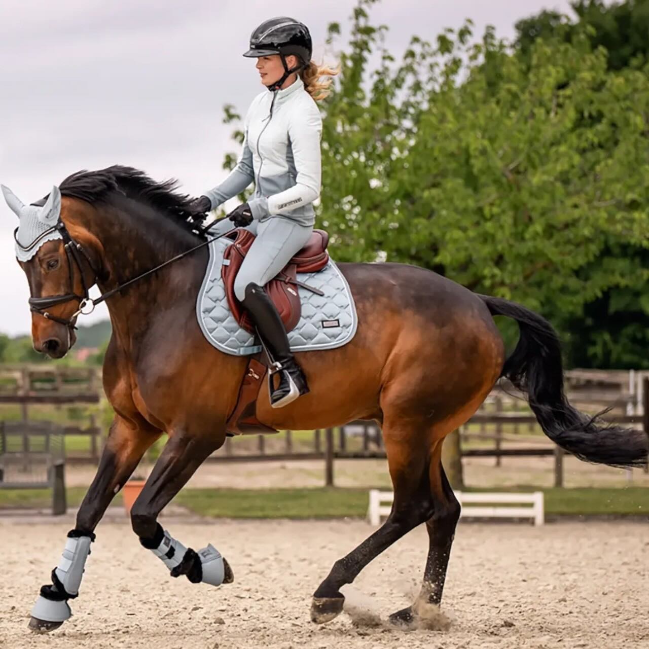Die Cavallo Springschabracke CAVALHANAYA FS 2026 Sattelunterlage verbindet elegantes Design mit funktionalem Komfort für dein Pferd. Hochwertige Materialien, eine aufwendige Steppung und durchdachte Details machen diese Schabracke zu einer stilvollen Wahl für Training und Turnier.