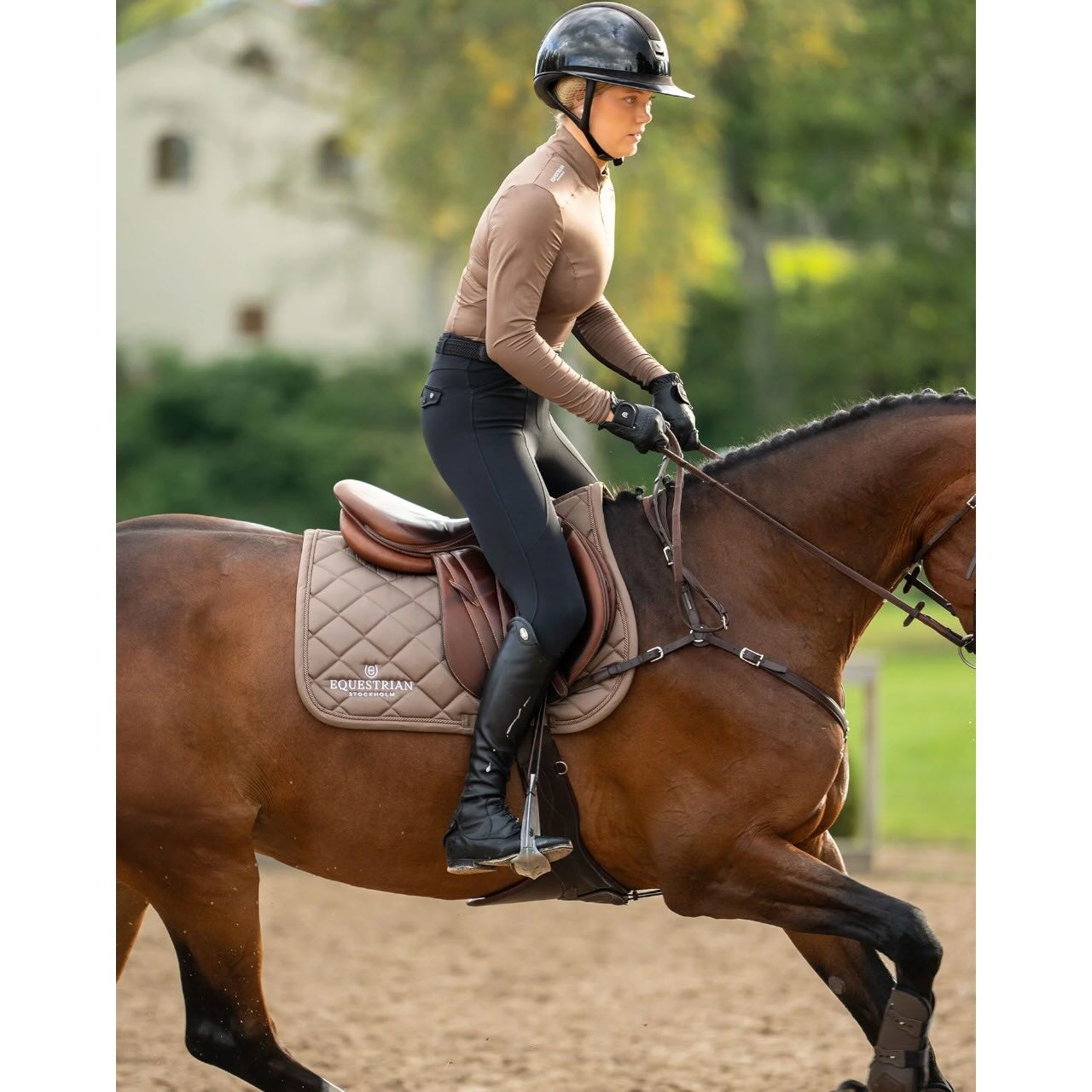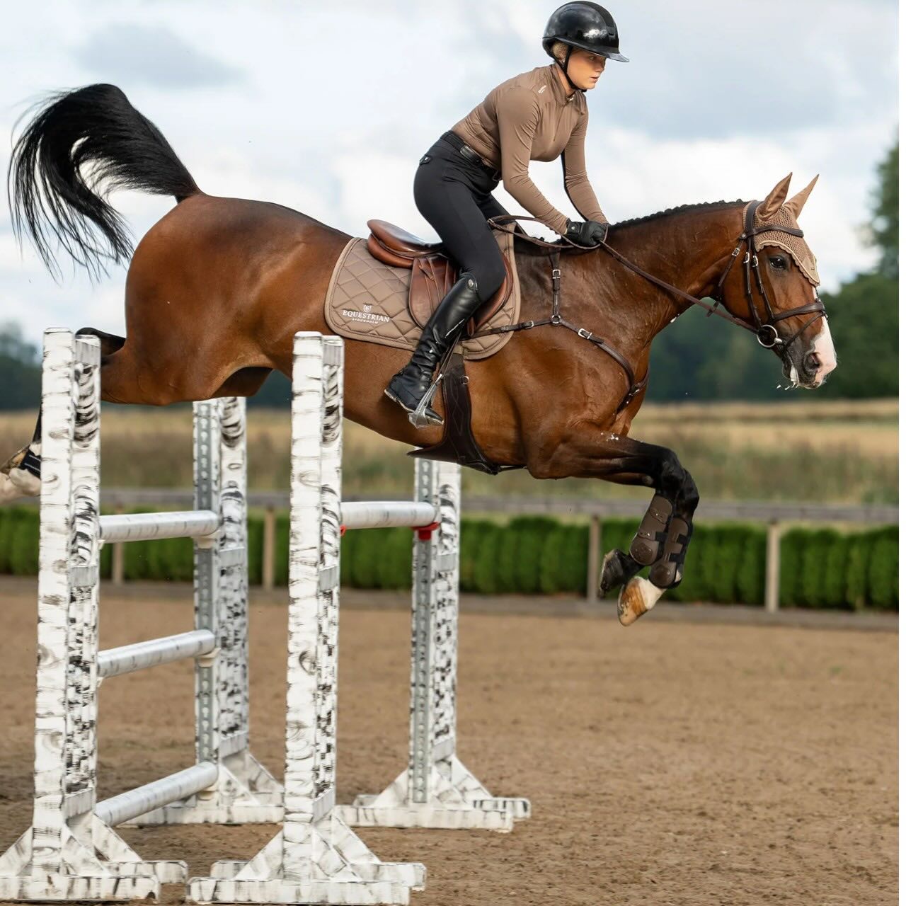 Die Equestrian Stockholm Springschabracke Line Champagne Schabracke vereint stilvolles Design in edlem Champagnerton mit funktionalen High-Tech-Materialien. Entdecke eine Springschabracke, die nicht nur optisch überzeugt, sondern dein Pferd auch bei intensiven Trainingseinheiten angenehm trocken und komfortabel hält.