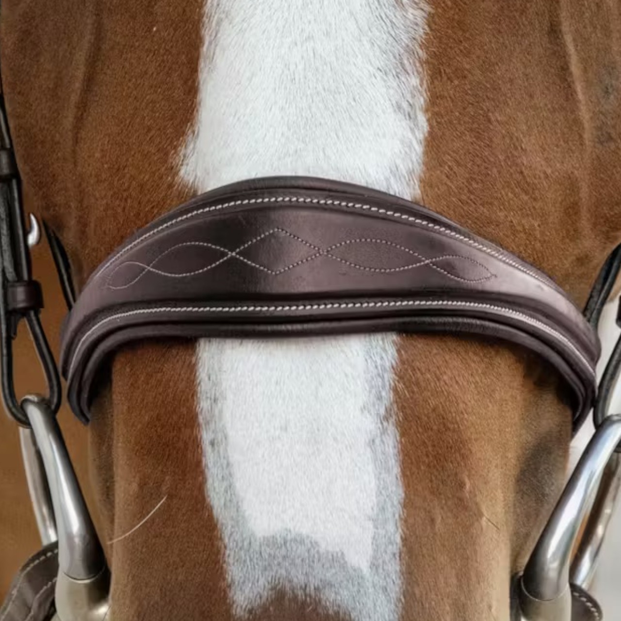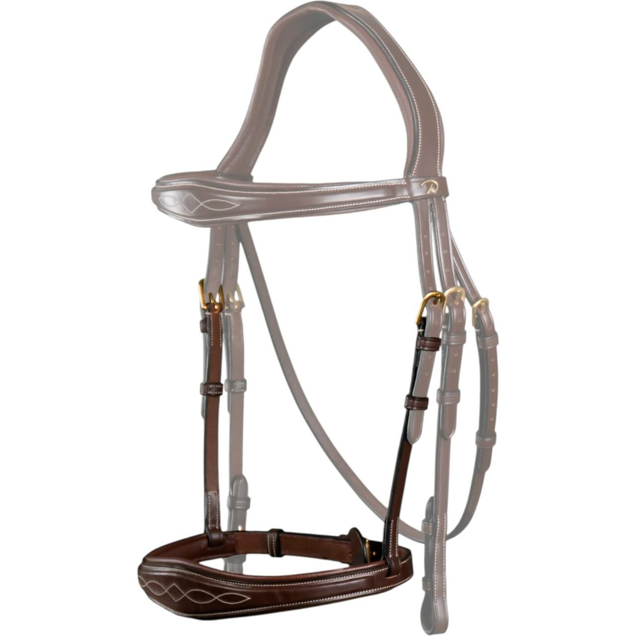 Das anatomisch geformte Nasenband ist speziell für den täglichen Einsatz konzipiert und legt den Fokus auf das Wohlbefinden deines Pferdes. Es bietet durch seine verbreiterte Mitte und das leicht quadratisch angehobene Design optimalen Tragekomfort. Die dekorative Steppnaht rundet das hochwertige Erscheinungsbild ab. Besonders im Showring kann dieser Nasenriemen durch seine schlichte Eleganz überzeugen. Der Verzicht auf einen Sperriemen sorgt für ein harmonischeres Gesamtbild. Das Modell lässt sich problemlos mit allen Trensen der D-Kollektion kombinieren.