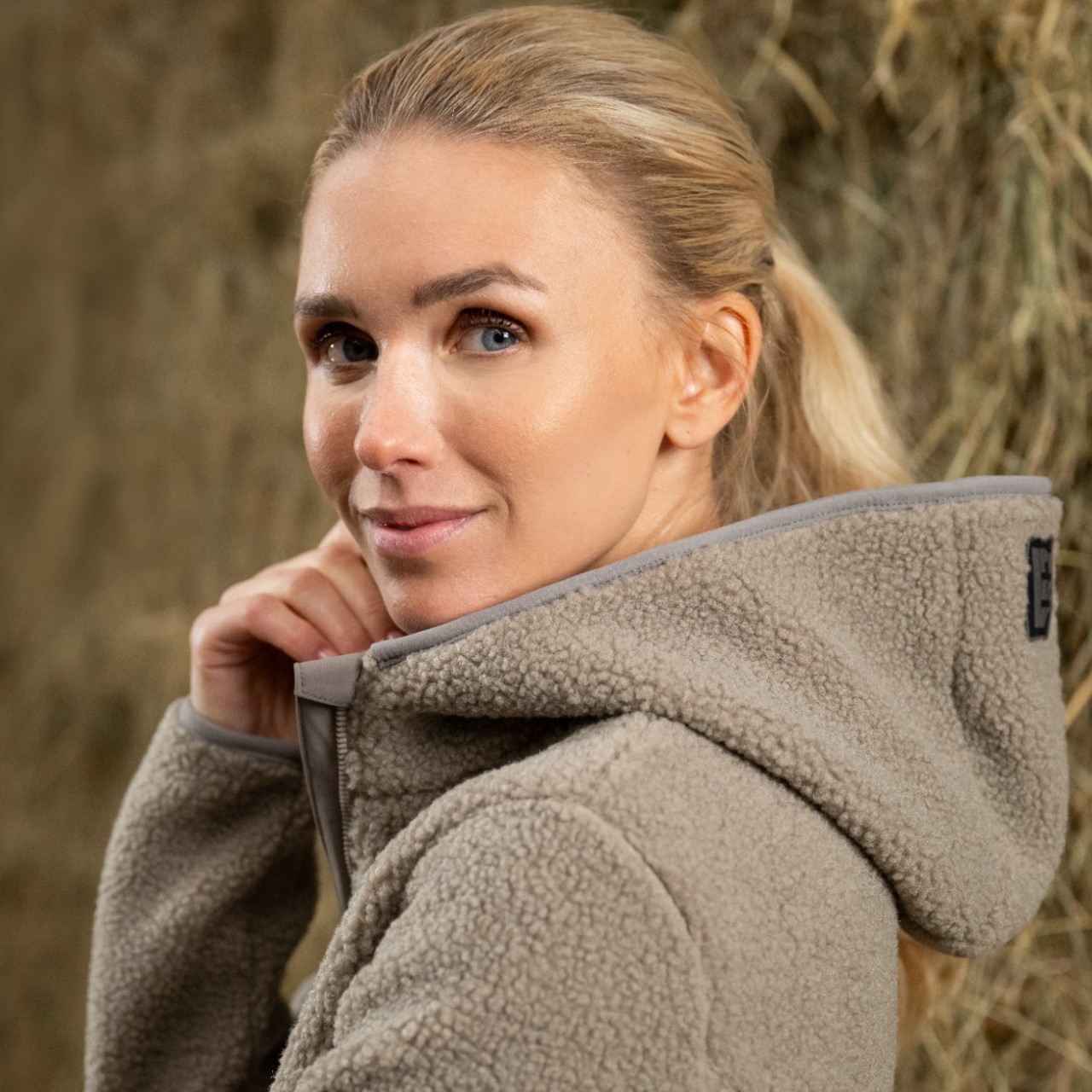 Mit ihrem sportlich-femininen Schnitt und den wärmenden Eigenschaften ist diese Fleecejacke nicht nur für den Stallalltag, sondern auch für Spaziergänge oder Freizeitaktivitäten perfekt geeignet. Das weiche Innenfutter hält dich selbst an kalten Wintertagen angenehm warm. Dank der robusten Qualität bleibt die Jacke auch nach häufigem Tragen in Form. Die zeitlose Farbgebung lässt sich vielseitig kombinieren und passt zu Reithosen ebenso wie zu Jeans. Funktionalität, Tragekomfort und modischer Anspruch vereinen sich hier in einem Produkt. So bist du bei jedem Wetter bestens ausgerüstet.