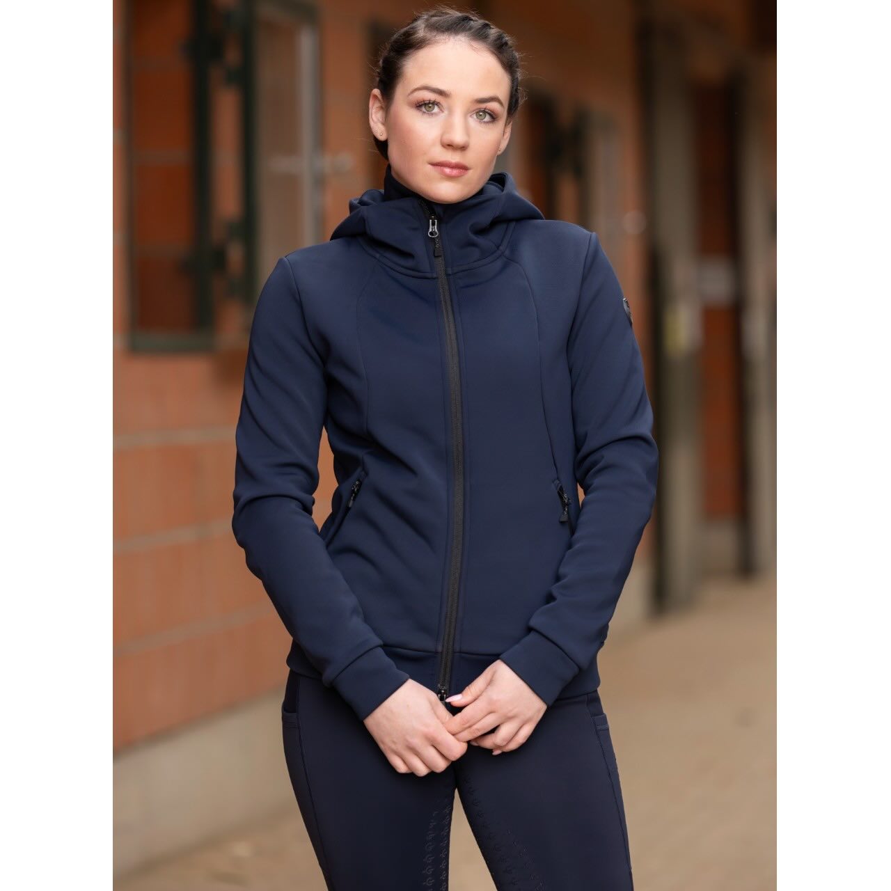 Die Hoody Jacket überzeugt mit ihrem modernen, taillierten Schnitt, der deine Silhouette elegant betont. Das sportliche Material sorgt für ein angenehmes Tragegefühl, selbst bei längeren Aktivitäten. Dank der leichten Verarbeitung kannst du sie flexibel kombinieren, sei es mit Reithose oder Jeans. Ihre klare Linienführung macht sie zu einem zeitlosen Begleiter. Ob für den Alltag oder beim Reiten, sie setzt immer einen sportlich-femininen Akzent. So vereint sie Funktionalität mit modischem Anspruch.