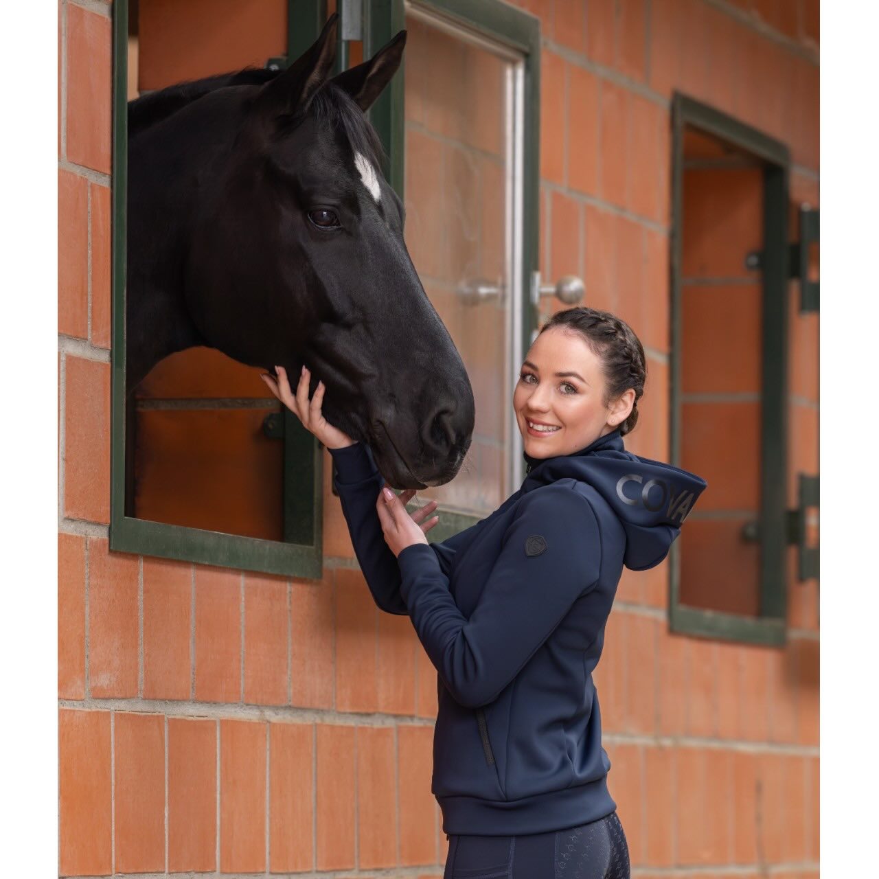 Die Covalliero Sweatjacke Damen HW 2025 Hoody Jacket kombiniert sportliches Design mit funktionalem Komfort. Dank femininer Passform, praktischen Details und vielseitiger Einsatzmöglichkeiten ist sie die ideale Begleitung im Stall, beim Training oder in deiner Freizeit.
