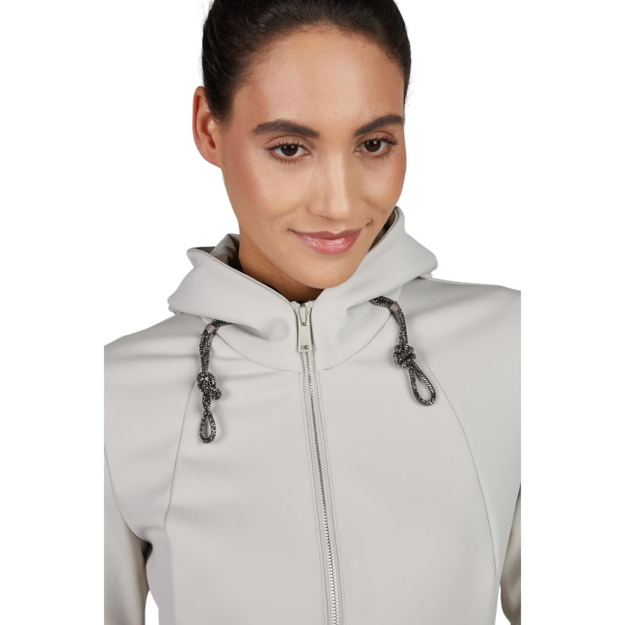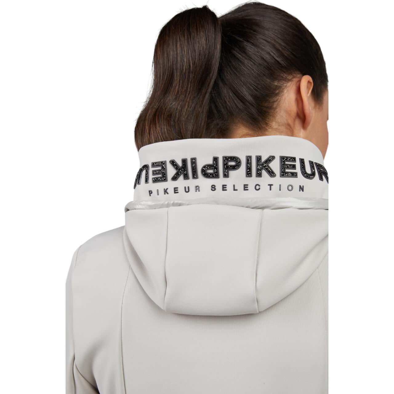 Besonderheiten | Crystalstone Kapuzen-Zierkordeln, feste Kapuze, Magnet-Klick-System an Kapuze, Pikeur Selection Crystalstone-Silikon Labeling auf dem Kapuzenrand |