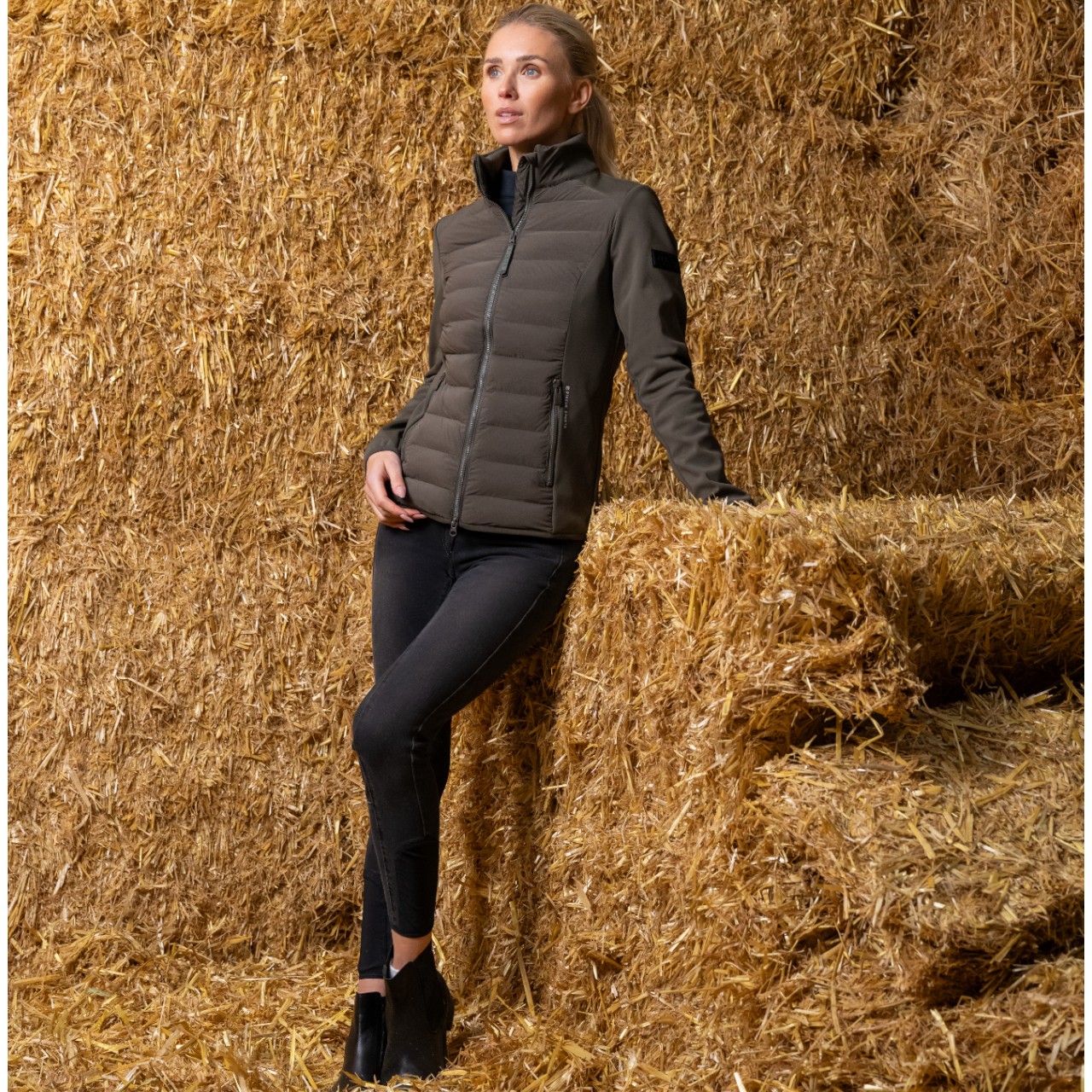Die Kombination aus Softshell und Nylon macht diese Jacke nicht nur funktional, sondern auch optisch zu einem Highlight. Die figurbetonte Passform sorgt für einen modernen Look, während das elastische Material jede Bewegung mitmacht. Ob beim Training, Ausritt oder Spaziergang – du bist stets bestens gekleidet. In der Farbe Deep Khaki lässt sich die Jacke vielseitig kombinieren und passt perfekt zu Reithosen, Jeans oder Freizeitoutfits.