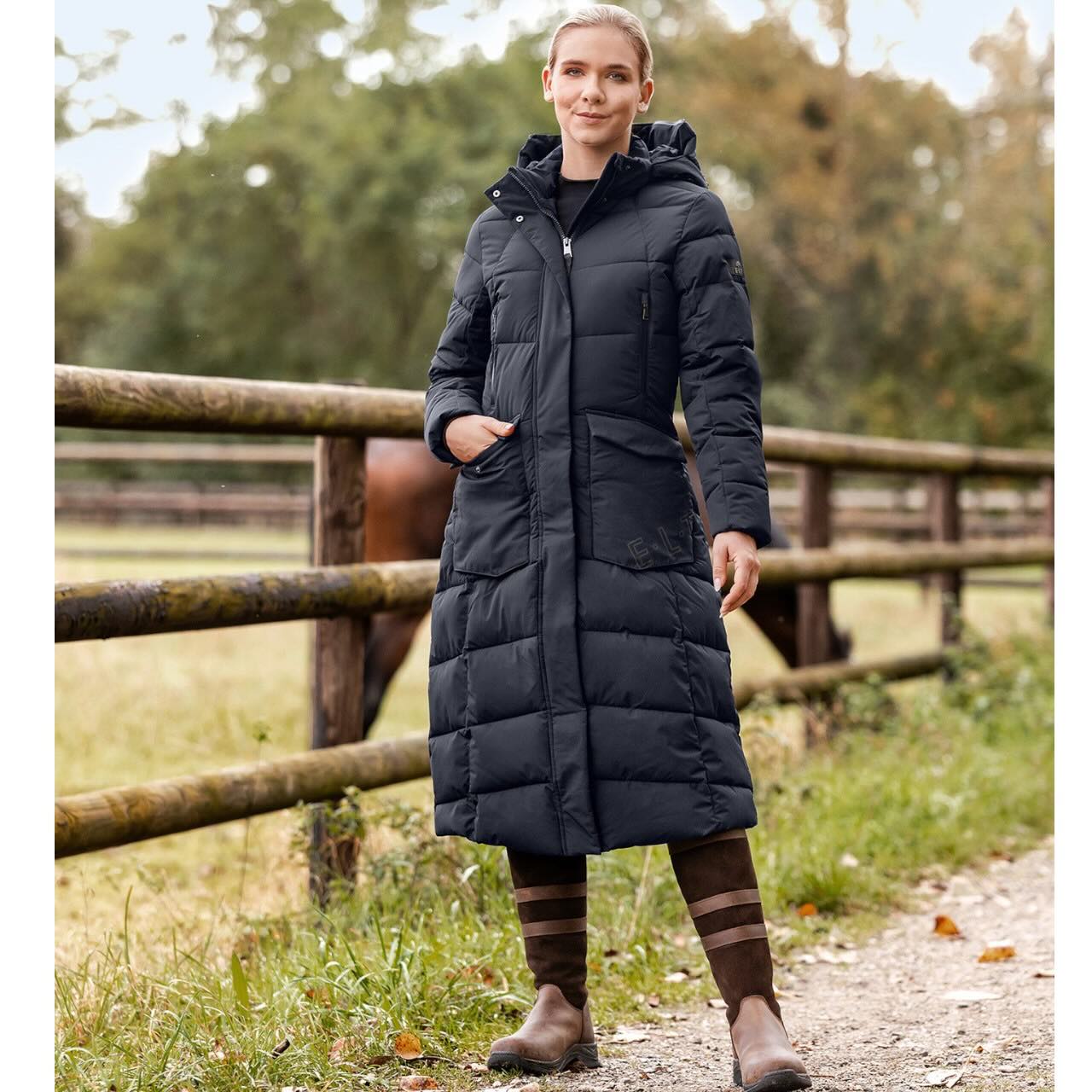 Der Mantel besticht durch seine leicht taillierte Silhouette, die eine feminine Passform bietet, ohne die Bewegungsfreiheit einzuschränken. Hochwertige Metall-Details, ein dekoratives Grosgrain-Badge mit E.L.T-Logo und der Reißverschluss in Metalloptik unterstreichen die elegante Optik. Die robuste Polyesterverarbeitung sorgt für Langlebigkeit und Pflegeleichtigkeit – ideal für den täglichen Gebrauch im Stall oder unterwegs. Kombiniert mit der E.L.T HW25 Kollektion lässt sich der Thermomantel perfekt in jedes Reitsport-Outfit integrieren. Ein durchdachter Mantel, der Funktion und Stil mühelos verbindet.