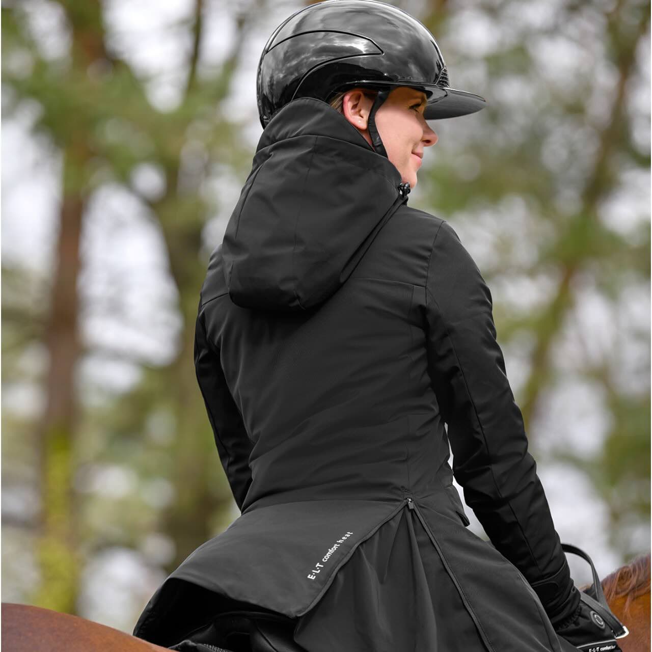 Das wind- und wasserabweisende Obermaterial des E.L.T Heizparka schützt dich zuverlässig vor Wettereinflüssen und sorgt gleichzeitig für hohe Atmungsaktivität. Eine leicht taillierte Passform und der hochwertige Zwei-Wege-Frontreißverschluss mit Kinnschutz garantieren optimalen Tragekomfort und Bewegungsfreiheit – perfekt für den Stallalltag oder den Ausritt. Die abnehmbare, weitenverstellbare Kapuze lässt sich am Rücken fixieren, während die Ärmelabschlüsse mit innenliegendem Bündchen zusätzlichen Schutz vor Kälte bieten. Praktische Details wie zwei Pattentaschen, eine integrierte USB-C Verbindung, seitliche Reißverschlusstaschen mit Semi-Lock-Pullern und Reitschlitze mit E.L.T Comfort Heat-Schriftzug runden das durchdachte Design ab.