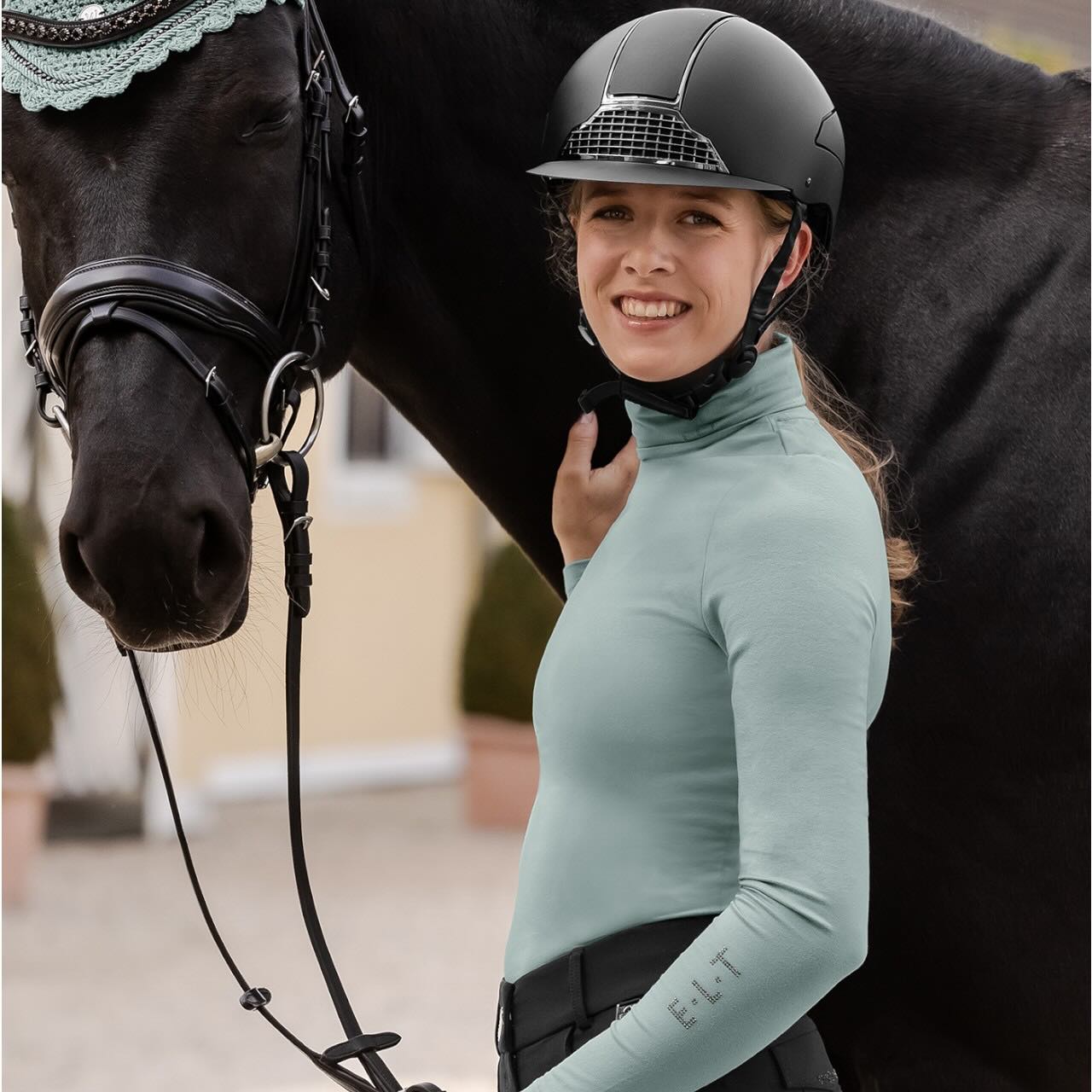 Das Madison Rollkragenshirt besticht durch seine taillierte Passform, die deine Silhouette vorteilhaft betont. Der dezente Logo-Print am Rollkragen und der ELT Schriftzug aus dekorativen Strasssteinen am Ärmel verleihen dem Oberteil einen exklusiven Look. Perfekt für Reitställe und den Alltag geeignet.