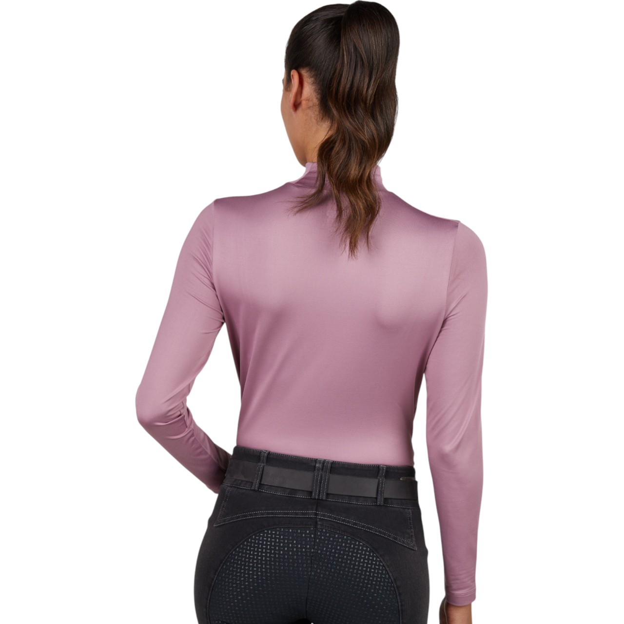 Das Langarmshirt besteht aus einem hochwertigen Materialmix aus 90 % Polyester und 10 % Elasthan, der optimale Bewegungsfreiheit und Formstabilität bietet. Der funktionelle Rollkragen schützt angenehm vor Kälte und ist ideal für die Übergangs- und Wintersaison. Dank der atmungsaktiven Eigenschaften wird Feuchtigkeit zuverlässig abgeleitet, sodass du dich jederzeit wohlfühlst. Der elastische Stoff passt sich deiner Figur an, ohne einzuengen. Flache Nähte sorgen für hohen Tragekomfort auch bei langen Einsätzen im Sattel. Ob beim Training, Ausritt oder in der Freizeit – dieses Shirt ist vielseitig einsetzbar.