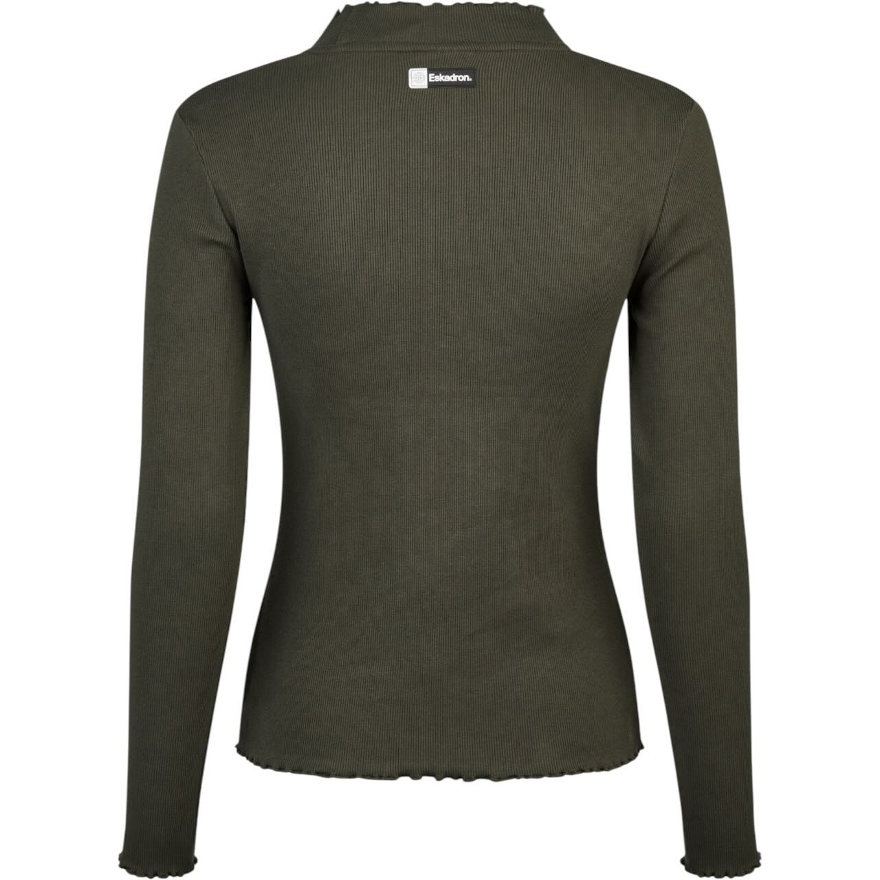 Dieses Langarmshirt besticht durch seinen charmanten Stehkragen, der mit verspielten Rüschen verziert ist. Die Rüschen finden sich auch an den Ärmel- und Saumabschlüssen wieder, was dem Shirt eine feminine Note verleiht. Der elegante Look wird durch den Eskadron Front-Print stilvoll ergänzt. Auf der Rückseite setzt das Eskadron-Badge einen weiteren hochwertigen Akzent. Durch diese Details ist das Shirt nicht nur funktional, sondern auch optisch ein Highlight in deinem Reitsport-Outfit.