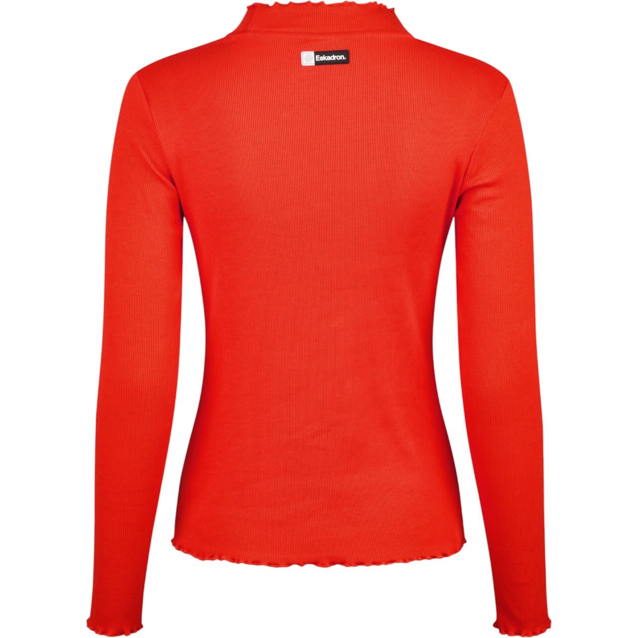 Dieses Langarmshirt besticht durch seinen charmanten Stehkragen, der mit verspielten Rüschen verziert ist. Die Rüschen finden sich auch an den Ärmel- und Saumabschlüssen wieder, was dem Shirt eine feminine Note verleiht. Der elegante Look wird durch den Eskadron Front-Print stilvoll ergänzt. Auf der Rückseite setzt das Eskadron-Badge einen weiteren hochwertigen Akzent. Durch diese Details ist das Shirt nicht nur funktional, sondern auch optisch ein Highlight in deinem Reitsport-Outfit.