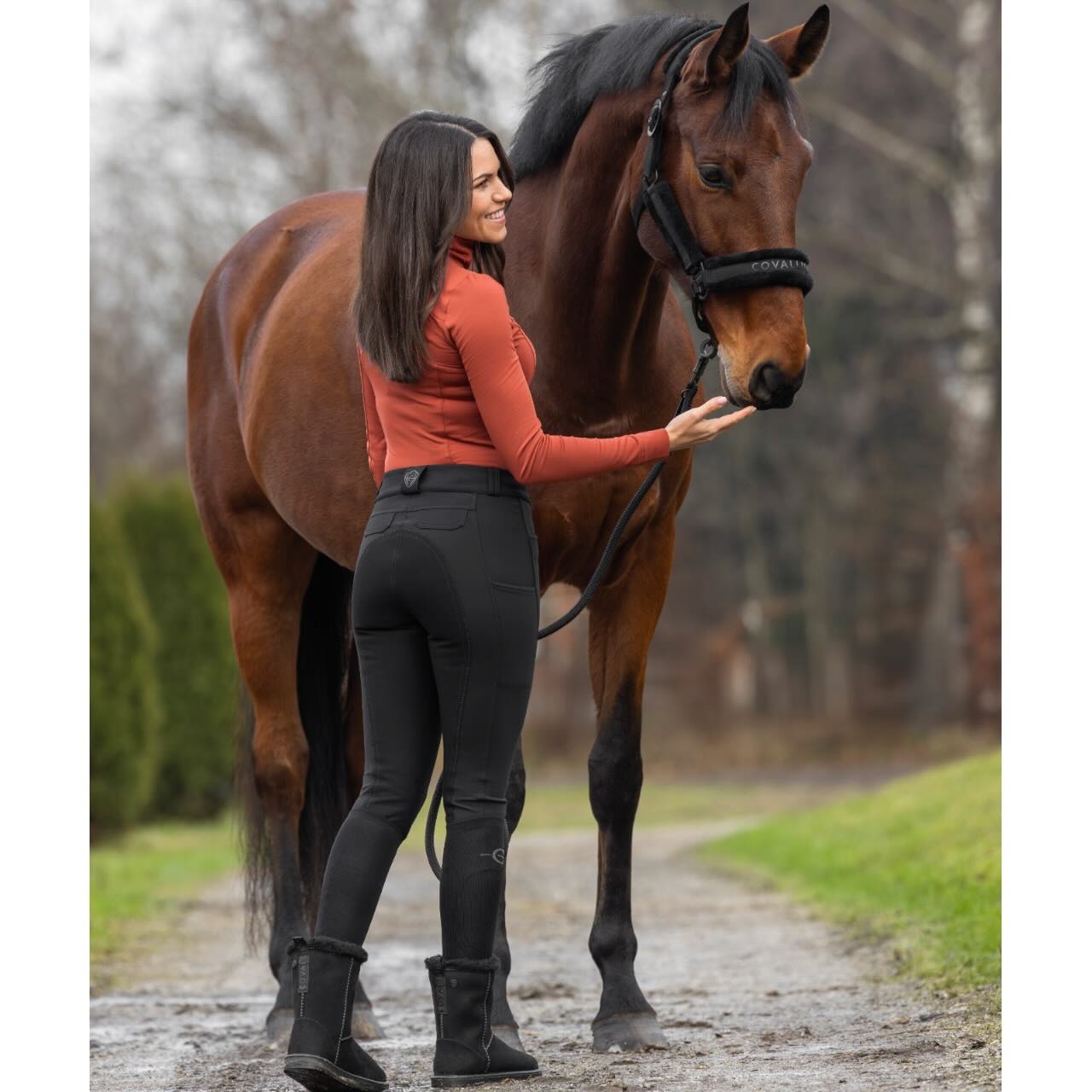 Covalliero präsentiert mit dem Baselayer Damen Langarm Active Shirt HW 2025 Half-Zip ein sportliches Funktionsshirt, das durch Elastizität, Atmungsaktivität und Tragekomfort überzeugt. Dieses vielseitige Active Shirt begleitet dich zuverlässig bei Training, Ausritten und Freizeitaktivitäten.