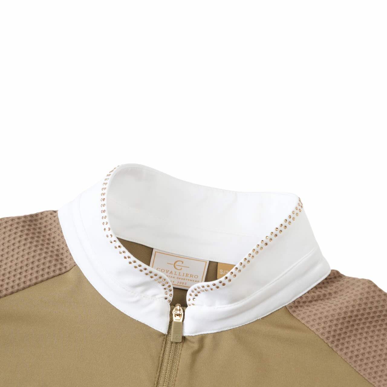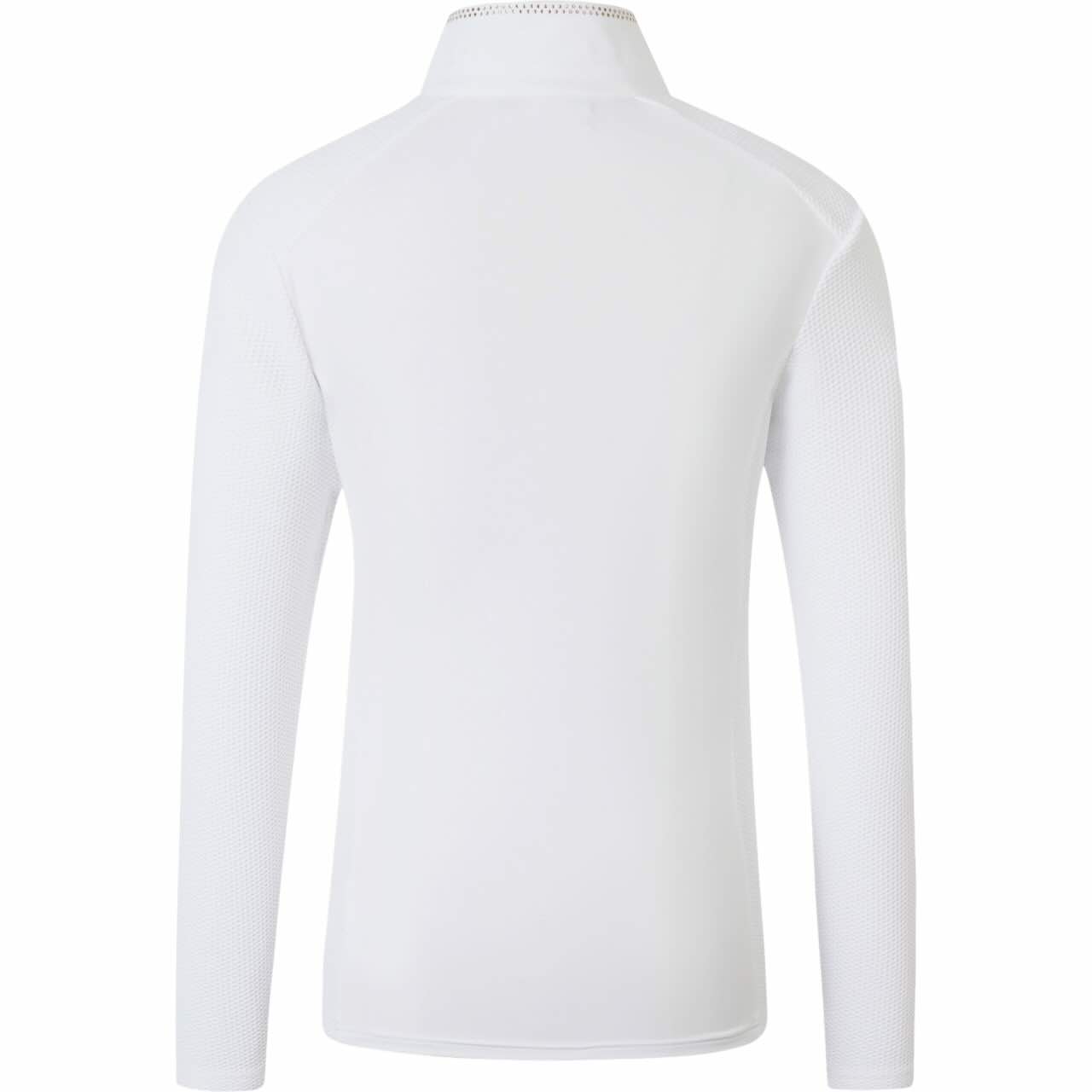 Der körpernahe Schnitt gewährleistet eine optimale Passform. Gleichzeitig bietet das Material maximale Bewegungsfreiheit im Sattel. Der feminine, taillierte Schnitt unterstreicht eine elegante Silhouette. Auch bei dynamischen Bewegungen bleibt das Shirt formstabil. Der Stehkragen mit Reißverschluss erleichtert das An- und Ausziehen. Zudem sorgt er für eine klassische Turnieroptik.