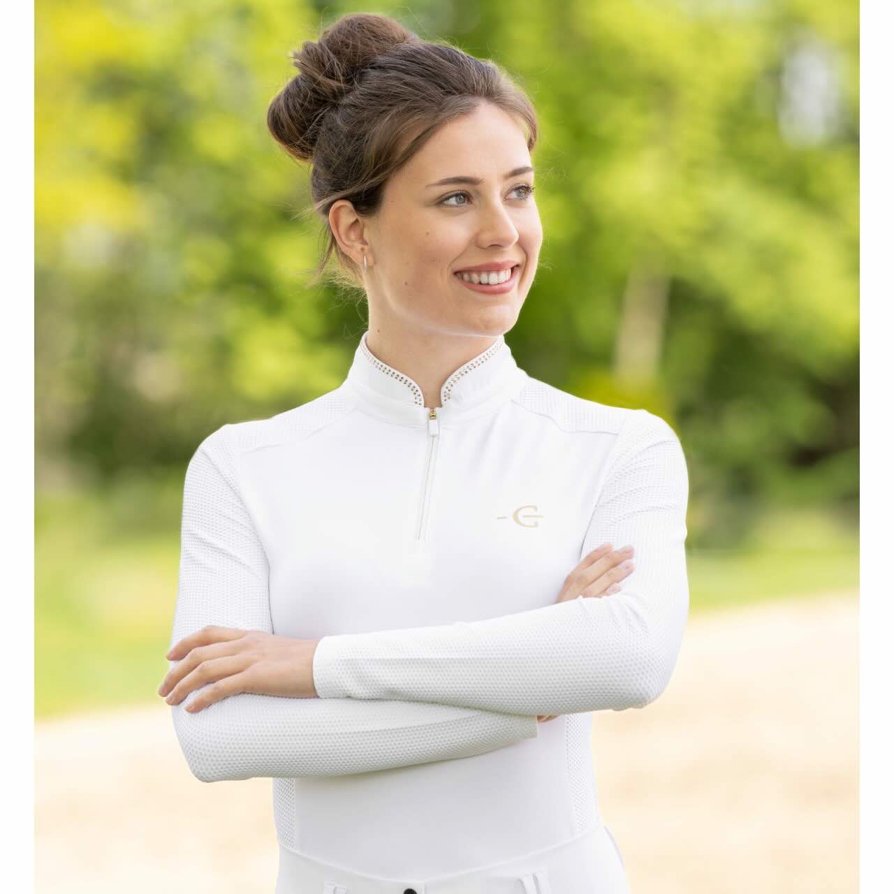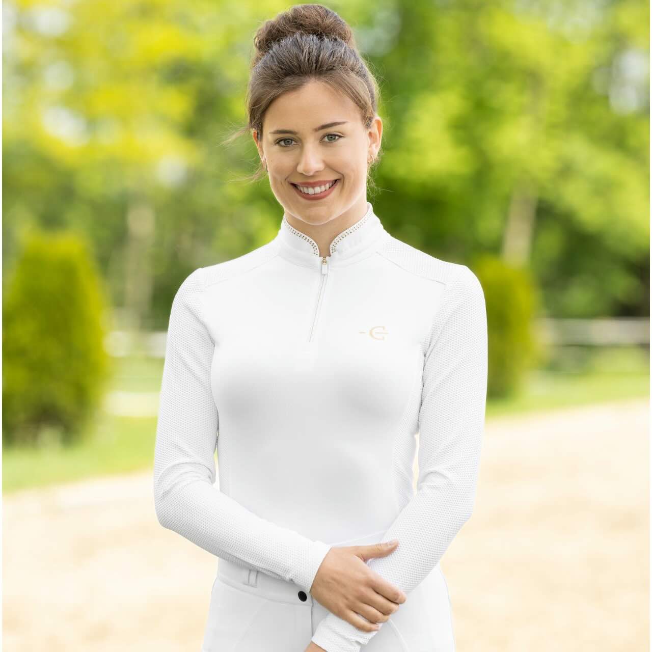 Eine dezente Glitzer-Applikation am Kragen setzt einen stilvollen Akzent. Dadurch erhält das Turniershirt eine moderne und hochwertige Ausstrahlung. Es lässt sich ideal mit Turnierjacket und Reithose kombinieren. Die atmungsaktive Struktur unterstützt ein angenehmes Körperklima auch bei längeren Prüfungen. Das Longsleeve eignet sich ebenso für das tägliche Training. Damit verbindet es Funktionalität und Eleganz im Reitsport.