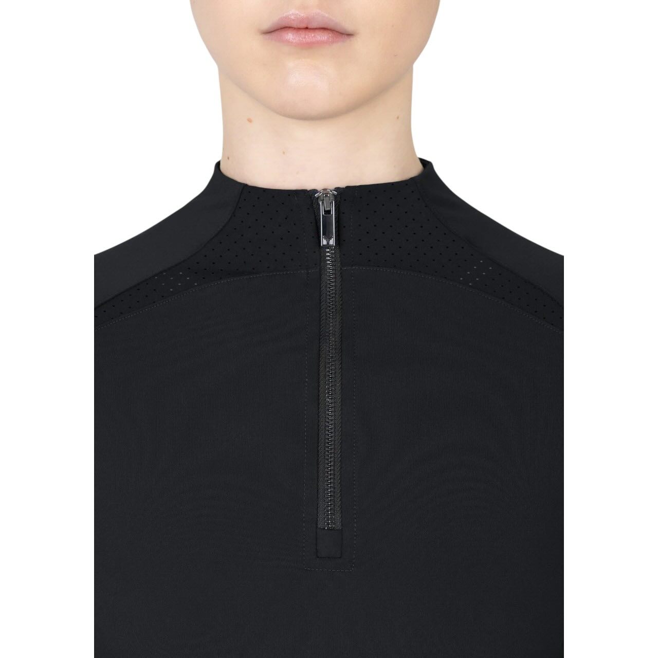 Das hochwertige Stretchmaterial passt sich deinem Körper optimal an und bietet uneingeschränkte Bewegungsfreiheit. Die ergonomisch geformte Schnittführung sorgt für eine sportliche Silhouette. Dank schnelltrocknender Eigenschaften ist das Shirt ideal für tägliches Training geeignet. Der flexible Kragen mit Reißverschluss ermöglicht individuelles Anpassen der Belüftung. Auch bei langen Reiteinheiten bleibt der Tragekomfort konstant hoch. Die bewährte Passform basiert auf beliebten Maximilian Base Layern.